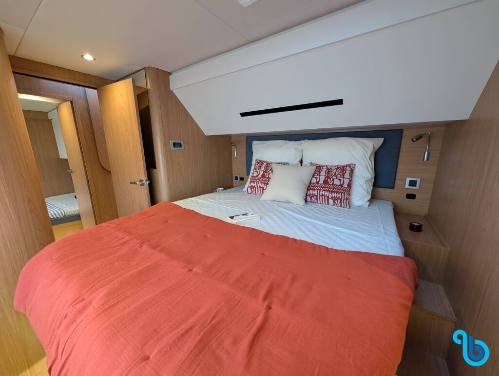 El patrón no está incluido en el precio del barco. Será posible añadir el patrón durante el procedimiento de confirmación: el coste suele oscilar entre 180 y 250 euros por día; el patrón necesita un camarote exclusivo. Tras consultar con un operador de BeBlue, será posible solicitar que el patrón duerma en la dinette (salón central).