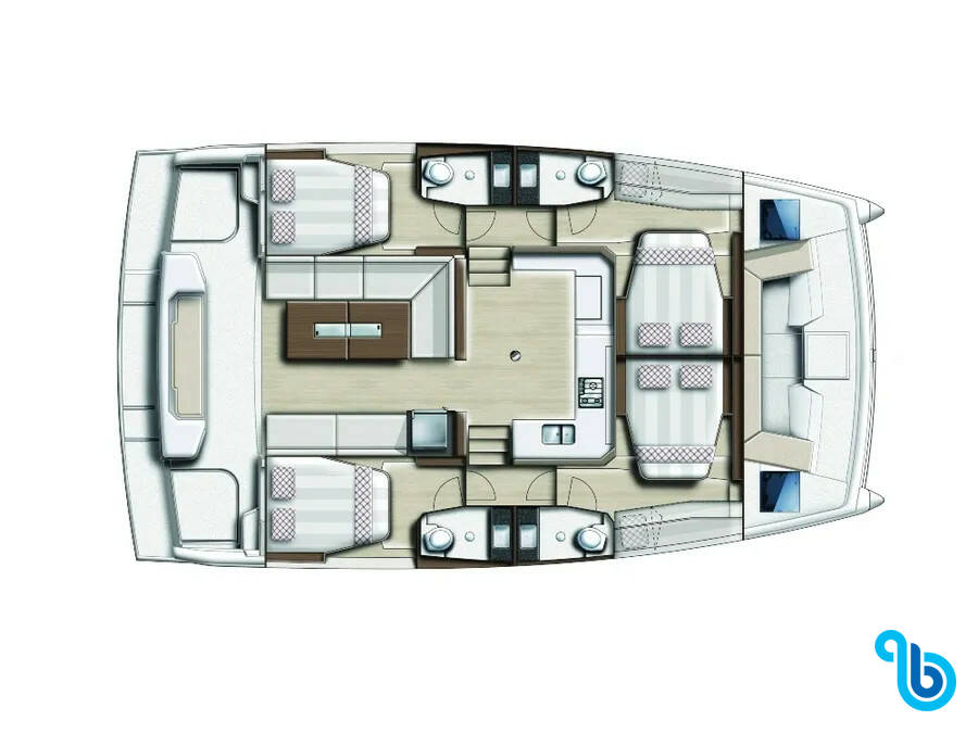 El patrón no está incluido en el precio del barco. Será posible añadir el patrón durante el procedimiento de confirmación: el coste suele oscilar entre 180 y 250 euros por día; el patrón necesita un camarote exclusivo. Tras consultar con un operador de BeBlue, será posible solicitar que el patrón duerma en la dinette (salón central).