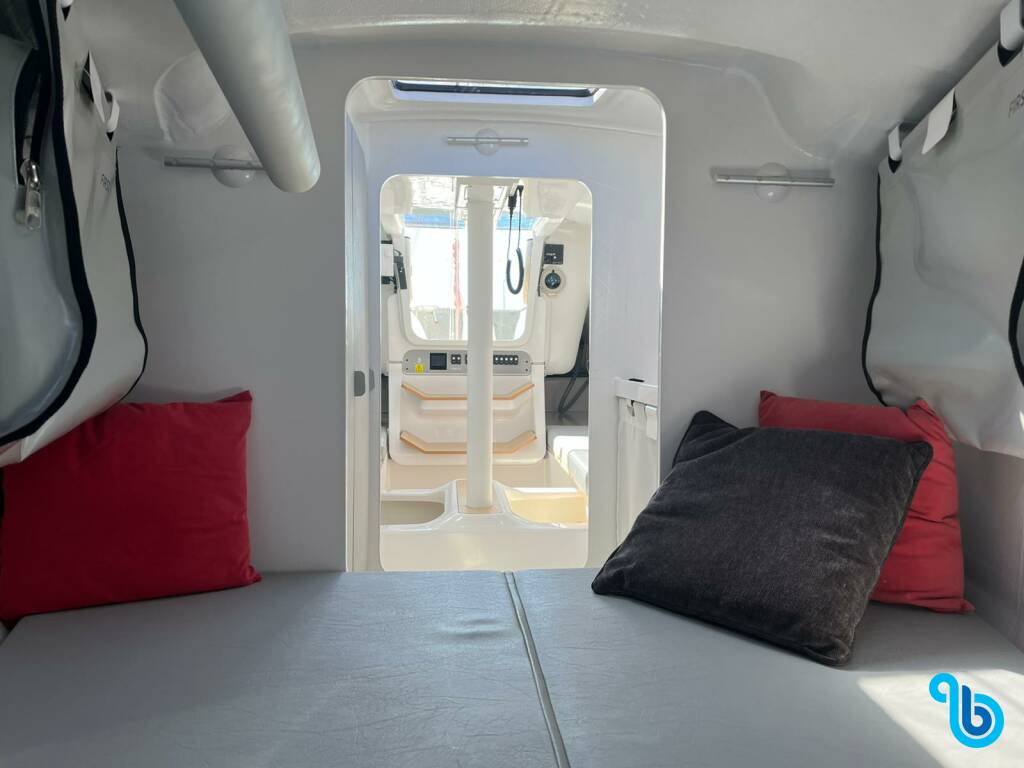 El patrón no está incluido en el precio del barco. Será posible añadir el patrón durante el procedimiento de confirmación: el coste suele oscilar entre 180 y 250 euros por día; el patrón necesita un camarote exclusivo. Tras consultar con un operador de BeBlue, será posible solicitar que el patrón duerma en la dinette (salón central).