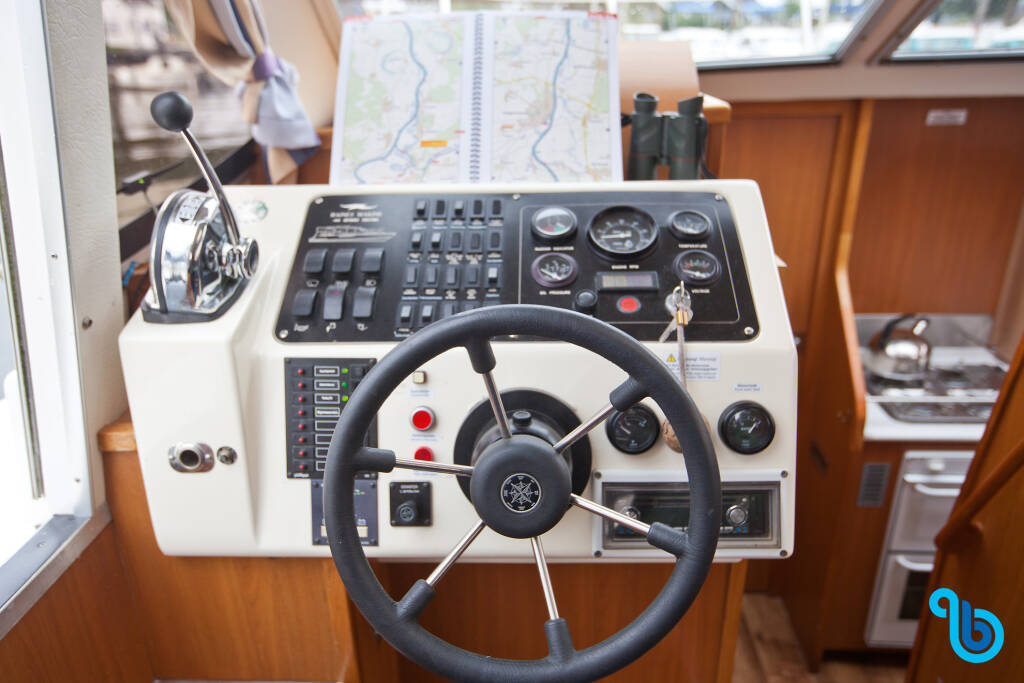 Detalles del barco El Haines 1070 Haines 1070-35 (Barco a motor), fue lanzado en 2000 y tiene su sede en Alemania - Mecklenburg en el puerto deportivo de la ciudad de Marina Müritz-Rechlin. El casco está equipado con 2 cabinas de barco y 2 wáter y está aprobado para acomodar cómodamente 4 gente . Marina Marina Müritz-Rechlin, Alemania Tipo de barco Barco a motor Embarcadero Shipyard Ejemplo Haines 1070 Año 2000 Cabinas 2 Camas 4 WC/Ducha 2 Fuel tank 360 l Water tank 400 l Longitud 10.30 m Ancho 3.70 m Draft 0.00 m Motor 62 Hp Nanni Boat ID 337498 Depósito 0 € Depósito 1.200 € EQUIPO VER- CLOSE Bímini Bimini / tendalino Cafetera Refrigerator Piloto automático Bow-Thruster Plataforma de baño Swimming platform Other Equipment 12 V Sockets Cooker and oven generator Outside shower PUERTO DEPORTIVO VER- CLOSE Puerto deportivo Marina Müritz-Rechlin, Alemania Los gastos obligatorios Extras optionales por reserva 95 € "bed made" service por reserva 4 € Bbq grill por reserva 29 € Bike por día 8 € Bimini por día 4 € Binoculars por reserva 20 € Dinghy 3mt por día 9 € Dinghy 4.30mt por día 10 € Early check-in por reserva 90 € Extra bed linen por reserva 8 € Extra cleaning (for pets) por reserva 80 € Extra cleaning (for pets) por reserva 70 € Extra towels por reserva 3 € Fishing cooler por día 4 € Fishing equipment por día 3 € Fishing licence por reserva 24 € Folding bike por día 8 € Fuel por reserva 220 € Kayak/canoe por día 12 € Outboard engine (deposit 500€) por día 10 € Stand up paddle sup por día 11 € Wifi (unlimited) por día 9 € VER TODO Abrir el calendario HAINES 1070 | HAINES 1070-35 22.11. - 29.11.2025 -2% 1.214 € 1.239 € 14.03. - 21.03.2026 -2% 1.214 € 1.239 € 21.03. - 28.03.2026 -2% 1.214 € 1.239 € 28.03. - 04.04.2026 -2% 1.242 € 1.267 € 04.04. - 11.04.2026 -2% 1.269 € 1.295 € 11.04. - 18.04.2026 -2% 1.214 € 1.239 € 12.09. - 19.09.2026 -2% 1.860 € 1.898 € 19.09. - 26.09.2026 -2% 1.641 € 1.674 € 26.09. - 03.10.2026 -2% 1.578 € 1.610 € 03.10. - 10.10.2026 -2% 1.735 € 1.770 € 10.10. - 17.10.2026 -2% 1.518 € 1.549 € 17.10. - 24.10.2026 -2% 1.269 € 1.295 € 24.10. - 31.10.2026 -2% 1.214 € 1.239 € 31.10. - 07.11.2026 -2% 1.214 € 1.239 € 07.11. - 14.11.2026 -2% 1.214 € 1.239 € Preguntas y Respuestas ¿Qué licencias necesito para alquilar el barco Haines 1070 | Haines 1070-35? Se requiere una licencia de navegación y un certificado personal de radio VHF. Le recomendamos que compruebe con un operador de BeBlue que su licencia es aceptada para esta embarcación y este país. ¿El precio incluye el patrón? El patrón no está incluido en el precio del barco. Será posible añadir el patrón durante el procedimiento de confirmación: el coste suele oscilar entre 180 y 250 euros por día; el patrón necesita un camarote exclusivo. Tras consultar con un operador de BeBlue, será posible solicitar que el patrón duerma en la dinette (salón central). ¿Qué es el Charter Pack? Se trata de un suplemento obligatorio y a tanto alzado que suele incluir la limpieza final, además de otros servicios prestados por la base. ¿Cuáles son los costes adicionales? Los costes adicionales consisten en los extras obligatorios y opcionales. También se incurrirá en gastos de bolsillo y consumo durante la navegación. (por ejemplo, comida estimada en galera 20€ por persona y día, gasoil por semana 150-300€, puertos y boyas, parques naturales, etc.). ¿Qué tipo de documentos recibiré de BeBlue después de reservar? La reserva se confirmará en línea introduciendo los datos del arrendatario, tras lo cual se emitirá el contrato real. Recibirá una tarjeta de embarque 7 días antes de la salida con instrucciones y detalles previos al embarque. ¿Cómo funcionan la reserva y la cancelación? Para confirmar la embarcación Haines 1070 | Haines 1070-35, deberá abonarse el 50% del precio de la embarcación y 35 días antes de la salida deberá abonarse el resto. Los extras opcionales y obligatorios deben pagarse in situ (a menos que se solicite lo contrario). El importe pagado no es reembolsable, pero recomendamos contratar un seguro de cancelación específico. https://www.bebluesailing.com/es/servicios-al-viajero/seguro-de-alquiler-dedicado ¿Está asegurada la embarcación Haines 1070 | Haines 1070-35? Todas las embarcaciones están cubiertas por el seguro Kasko para protegerlas de posibles daños. Existe un seguro adicional para aumentar el límite de responsabilidad del patrón, proteger la fianza y/o cancelar el viaje: https://www.bebluesailing.com/es/servicios-al-viajero/seguro-de-alquiler-dedicado ¿A cuánto asciende la fianza? El depósito de seguridad por cualquier daño causado a esta embarcación es de 1.200,00 € . Puede reducir el riesgo asegurando el depósito a través del enlace: https://www.bebluesailing.com/es/servicios-al-viajero/seguro-de-alquiler-dedicado Nota: las respuestas proporcionadas son de carácter informativo y deberán reconfirmarse durante la fase de reserva con un operador de BeBlue.
