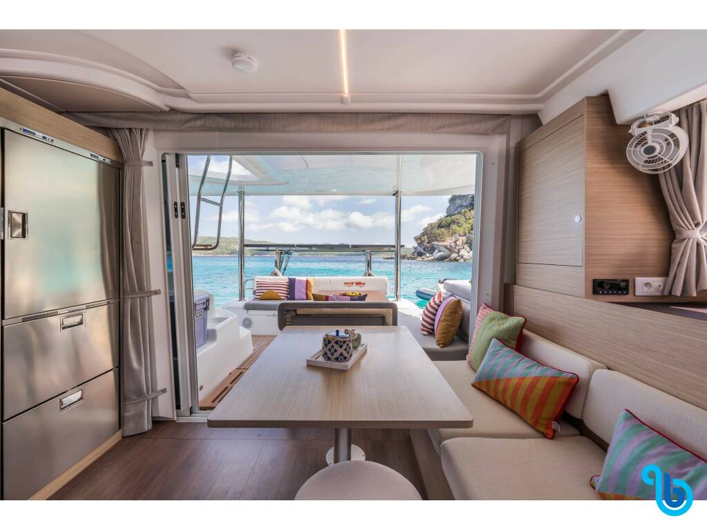 El patrón no está incluido en el precio del barco. Será posible añadir el patrón durante el procedimiento de confirmación: el coste suele oscilar entre 180 y 250 euros por día; el patrón necesita un camarote exclusivo. Tras consultar con un operador de BeBlue, será posible solicitar que el patrón duerma en la dinette (salón central).