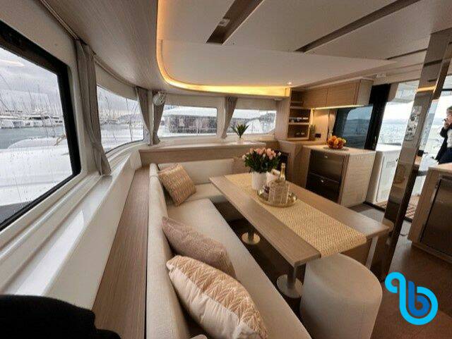 El patrón no está incluido en el precio del barco. Será posible añadir el patrón durante el procedimiento de confirmación: el coste suele oscilar entre 180 y 250 euros por día; el patrón necesita un camarote exclusivo. Tras consultar con un operador de BeBlue, será posible solicitar que el patrón duerma en la dinette (salón central).