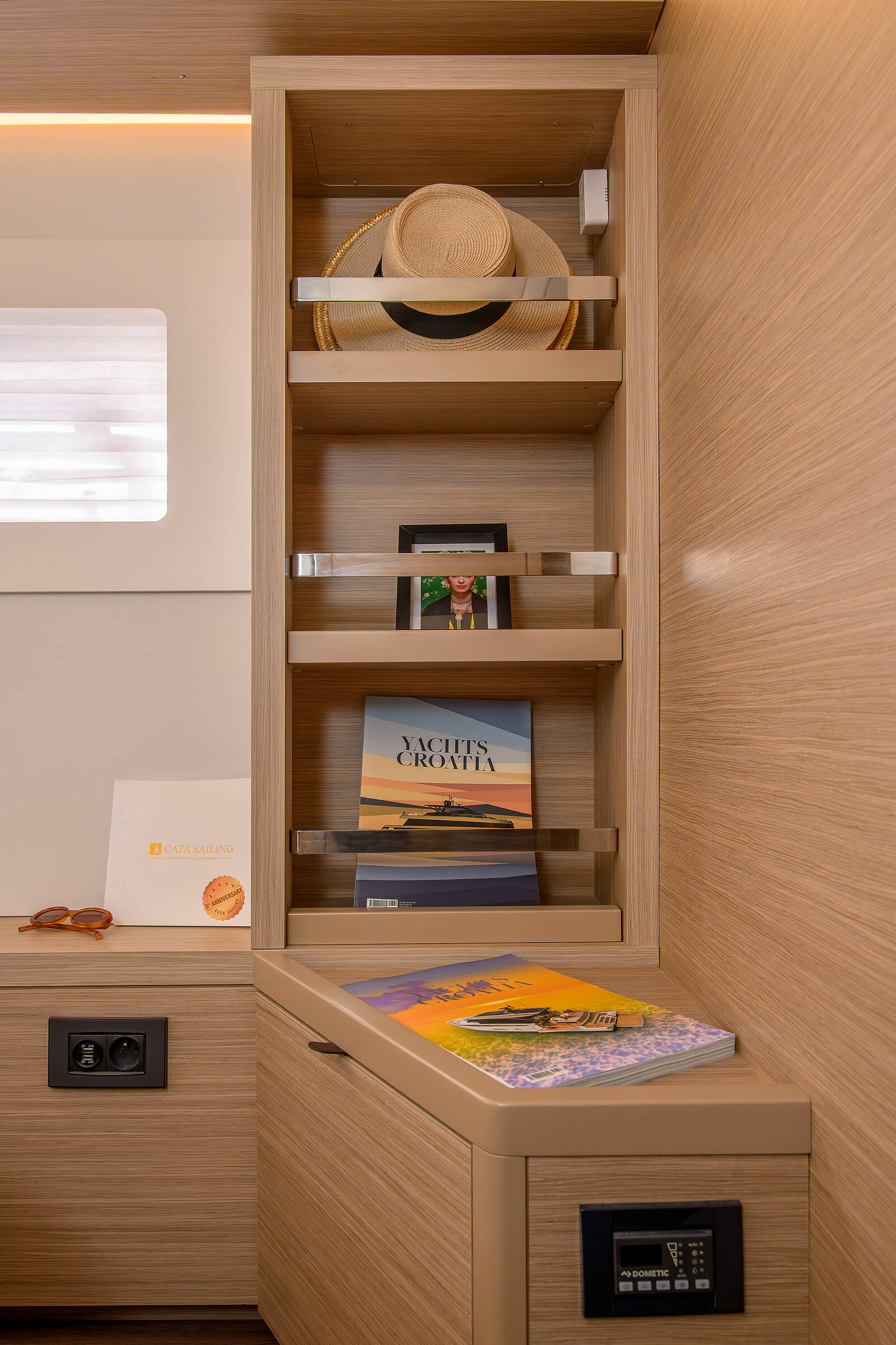 El Lagoon 46 (Catamarán), fue botado en el 2024 y tiene base en Región de Split de la ciudad de Trogir, Marina Trogir (ex.SCT). El casco está configurado con 6 cabinas y 4 wc y está homologado para alojar cómodamente 12 personas.