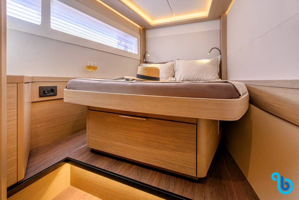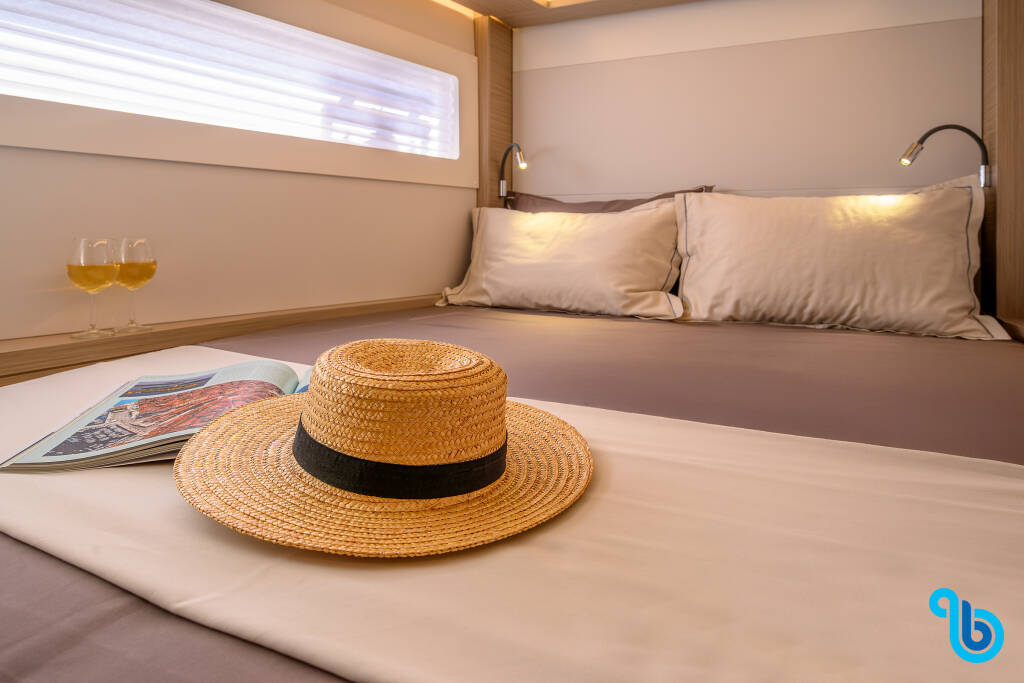 El patrón no está incluido en el precio del barco. Será posible añadir el patrón durante el procedimiento de confirmación: el coste suele oscilar entre 180 y 250 euros por día; el patrón necesita un camarote exclusivo. Tras consultar con un operador de BeBlue, será posible solicitar que el patrón duerma en la dinette (salón central).