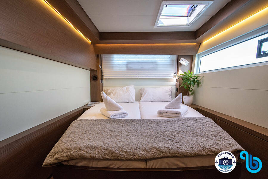 El patrón no está incluido en el precio del barco. Será posible añadir el patrón durante el procedimiento de confirmación: el coste suele oscilar entre 180 y 250 euros por día; el patrón necesita un camarote exclusivo. Tras consultar con un operador de BeBlue, será posible solicitar que el patrón duerma en la dinette (salón central).