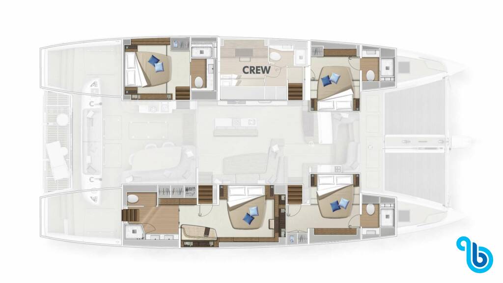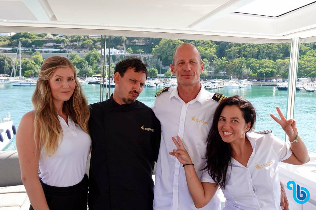 El patrón no está incluido en el precio del barco. Será posible añadir el patrón durante el procedimiento de confirmación: el coste suele oscilar entre 180 y 250 euros por día; el patrón necesita un camarote exclusivo. Tras consultar con un operador de BeBlue, será posible solicitar que el patrón duerma en la dinette (salón central).