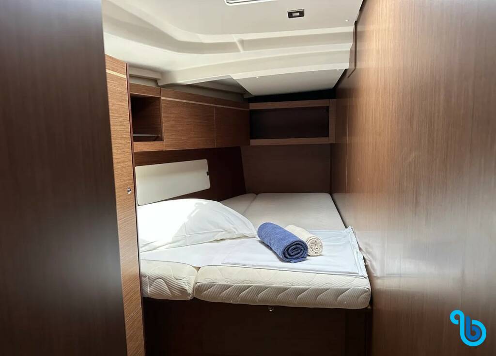 El patrón no está incluido en el precio del barco. Será posible añadir el patrón durante el procedimiento de confirmación: el coste suele oscilar entre 180 y 250 euros por día; el patrón necesita un camarote exclusivo. Tras consultar con un operador de BeBlue, será posible solicitar que el patrón duerma en la dinette (salón central).