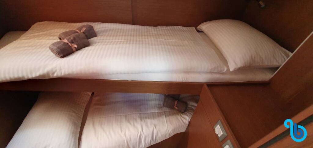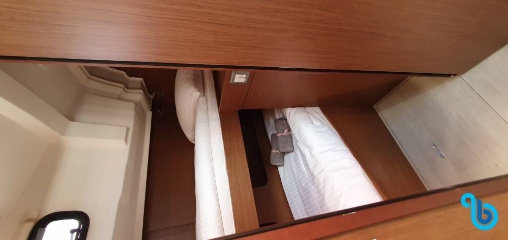 El patrón no está incluido en el precio del barco. Será posible añadir el patrón durante el procedimiento de confirmación: el coste suele oscilar entre 180 y 250 euros por día; el patrón necesita un camarote exclusivo. Tras consultar con un operador de BeBlue, será posible solicitar que el patrón duerma en la dinette (salón central).