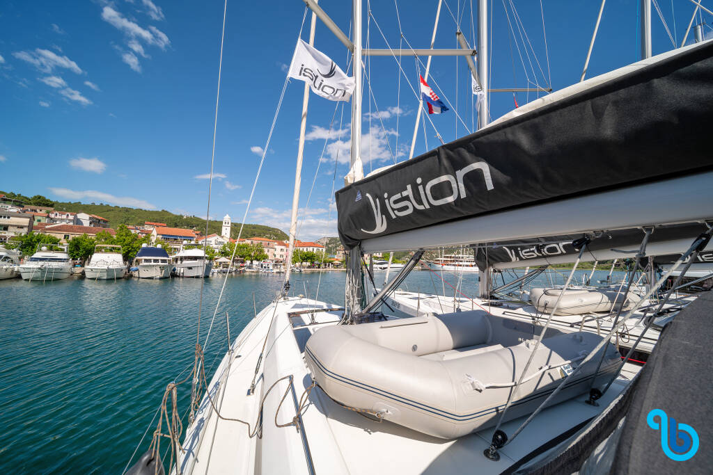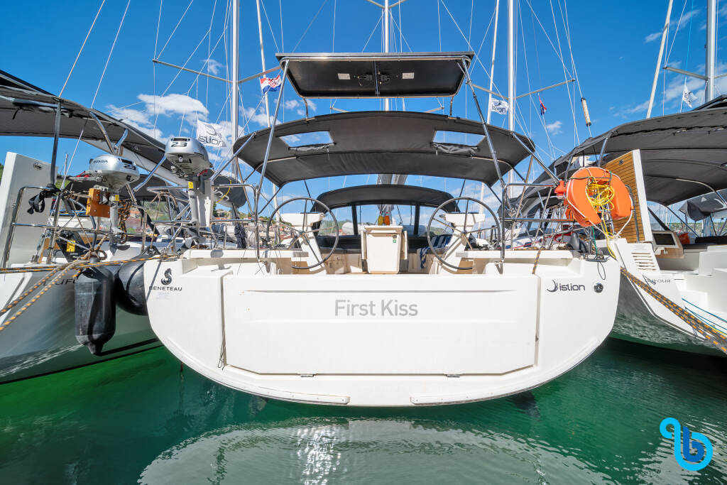 El Oceanis 46.1 FIRST KISS (Velero), fue botado en el 2023 y tiene base en Región de Šibenik de la ciudad de ACI Marina Skradin. El casco está configurado con 4 cabinas y 4 wc y está homologado para alojar cómodamente 8 + 2 personas.