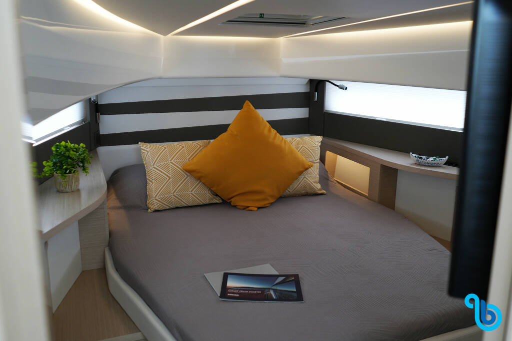 El patrón no está incluido en el precio del barco. Será posible añadir el patrón durante el procedimiento de confirmación: el coste suele oscilar entre 180 y 250 euros por día; el patrón necesita un camarote exclusivo. Tras consultar con un operador de BeBlue, será posible solicitar que el patrón duerma en la dinette (salón central).