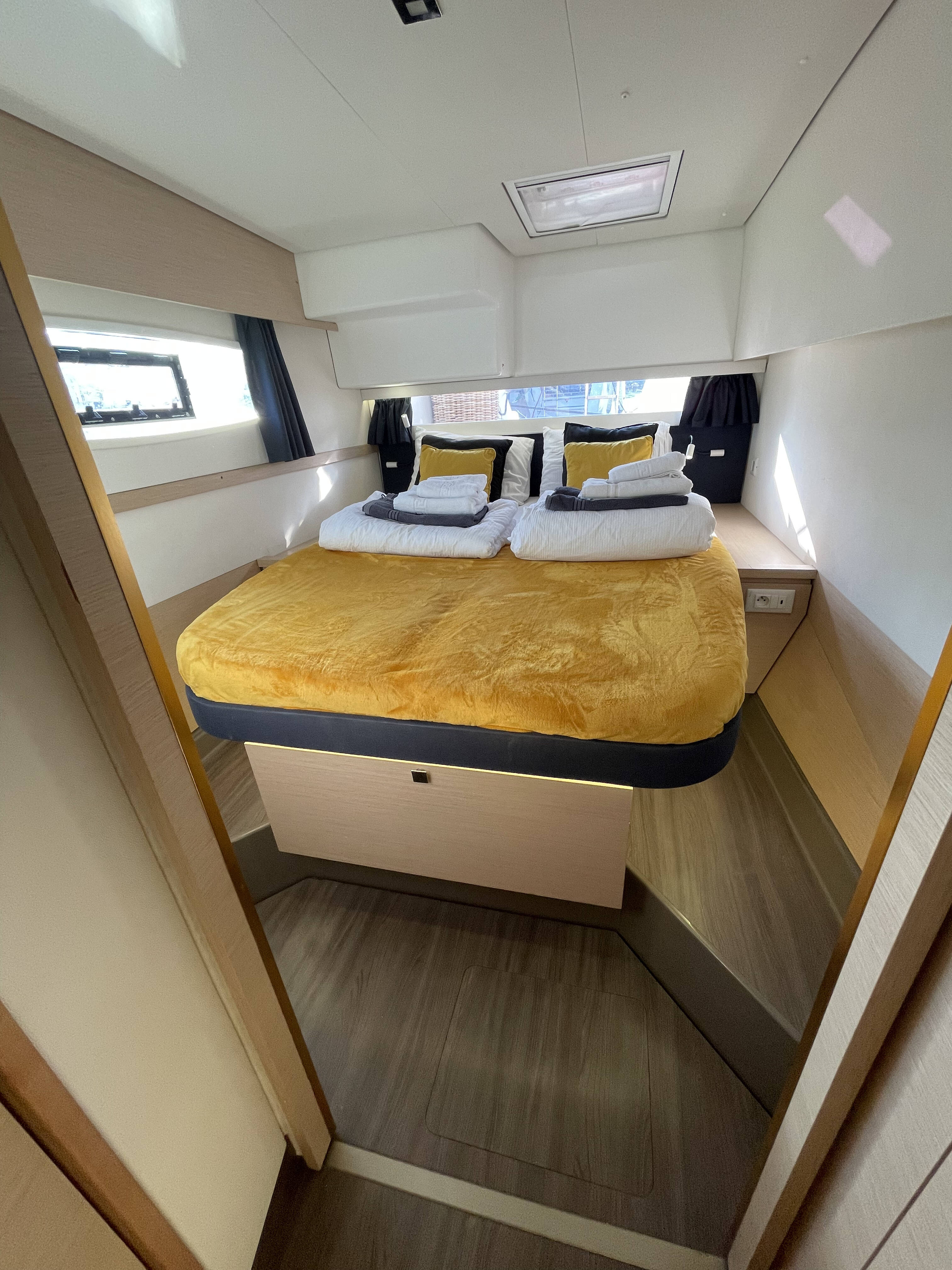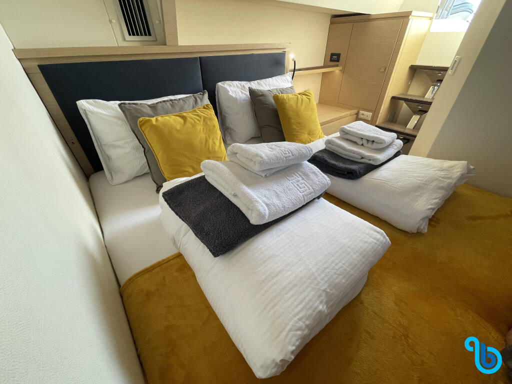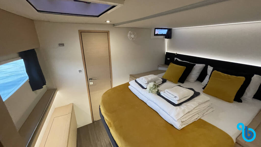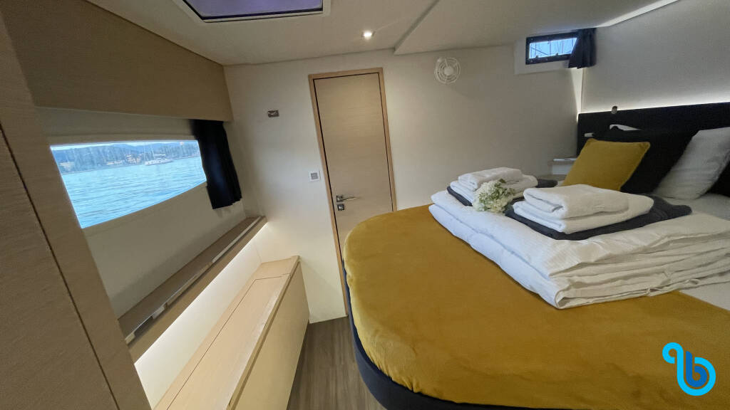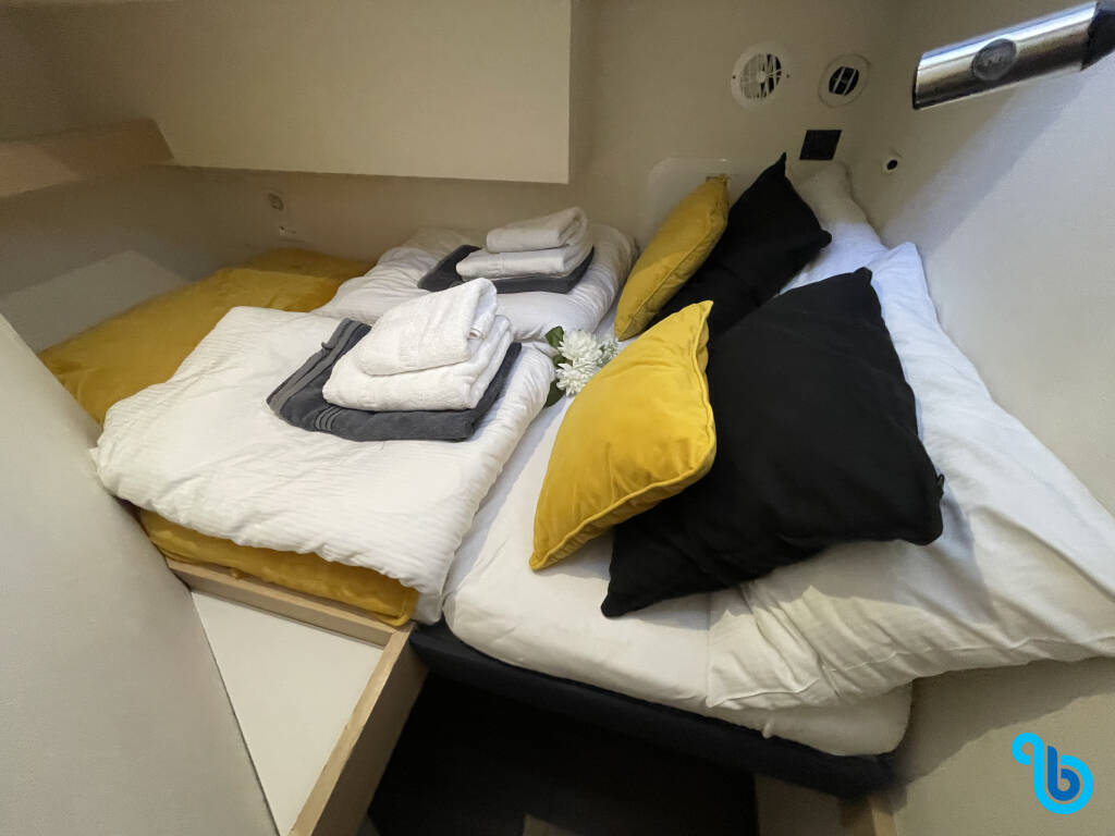 El patrón no está incluido en el precio del barco. Será posible añadir el patrón durante el procedimiento de confirmación: el coste suele oscilar entre 180 y 250 euros por día; el patrón necesita un camarote exclusivo. Tras consultar con un operador de BeBlue, será posible solicitar que el patrón duerma en la dinette (salón central).