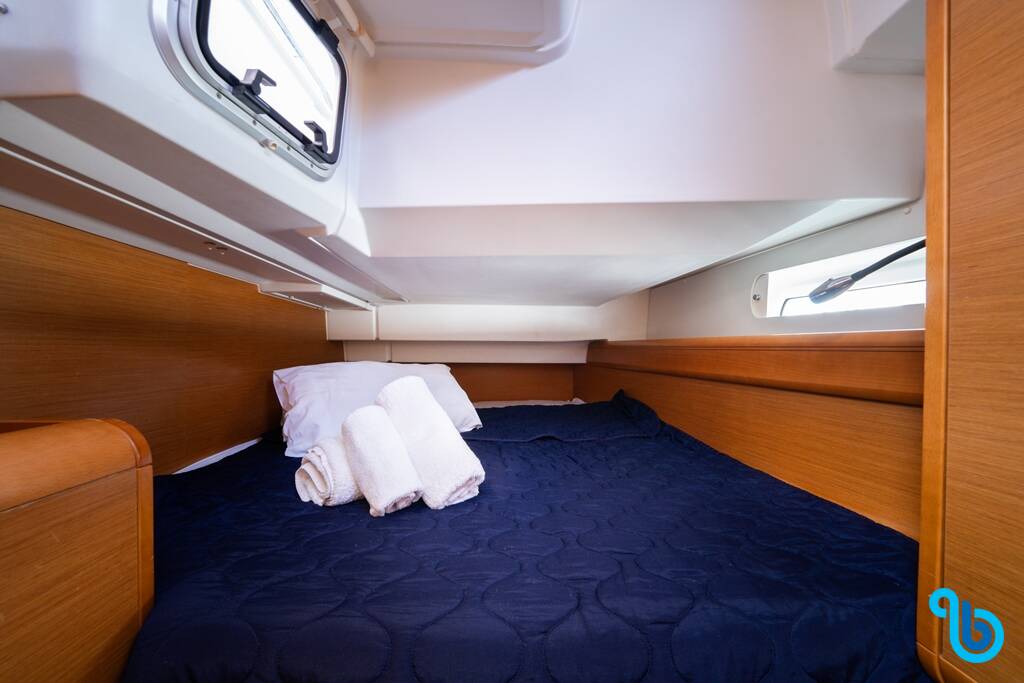 El patrón no está incluido en el precio del barco. Será posible añadir el patrón durante el procedimiento de confirmación: el coste suele oscilar entre 180 y 250 euros por día; el patrón necesita un camarote exclusivo. Tras consultar con un operador de BeBlue, será posible solicitar que el patrón duerma en la dinette (salón central).