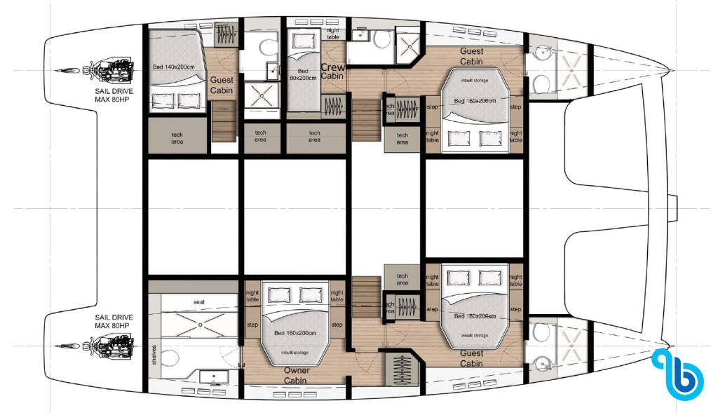 El patrón no está incluido en el precio del barco. Será posible añadir el patrón durante el procedimiento de confirmación: el coste suele oscilar entre 180 y 250 euros por día; el patrón necesita un camarote exclusivo. Tras consultar con un operador de BeBlue, será posible solicitar que el patrón duerma en la dinette (salón central).