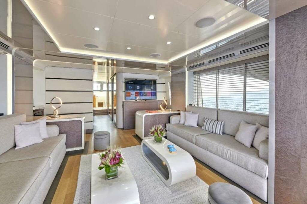 Other Entertainment: SAT TV in salon and cabins self-location SONOS audiovisual equipment with domotic controls throughout the boat, Android LED TV system throughout the boat, Home cinema in every cabin (as well as Bluetooth and HDMI) CCTV Raymarine waterproof cameras in engine room and cockpit, Hi Fi Stereo, Wi-Fi, Charger Station / USB / BT