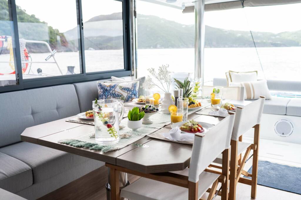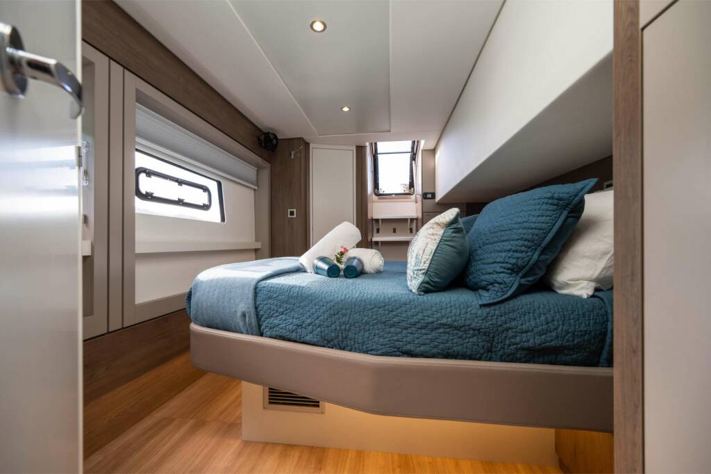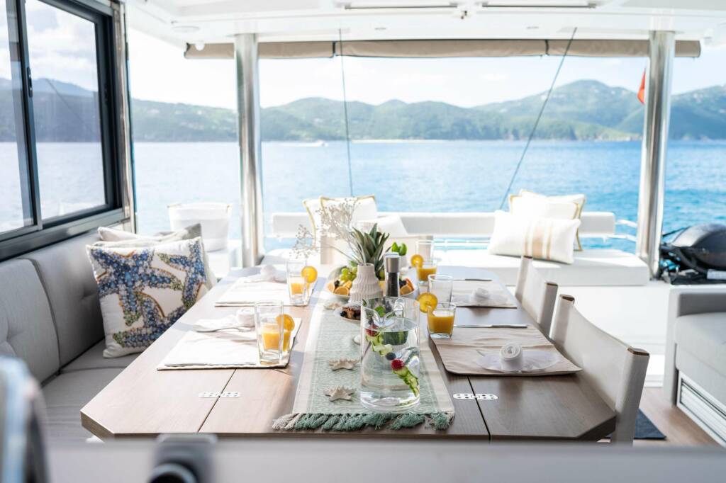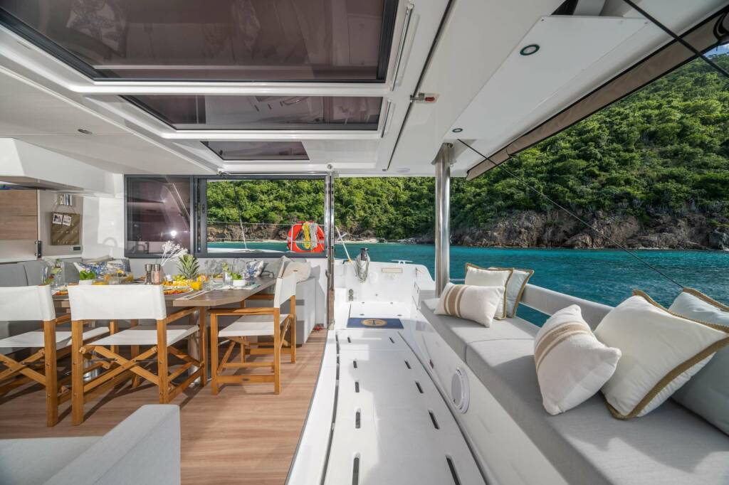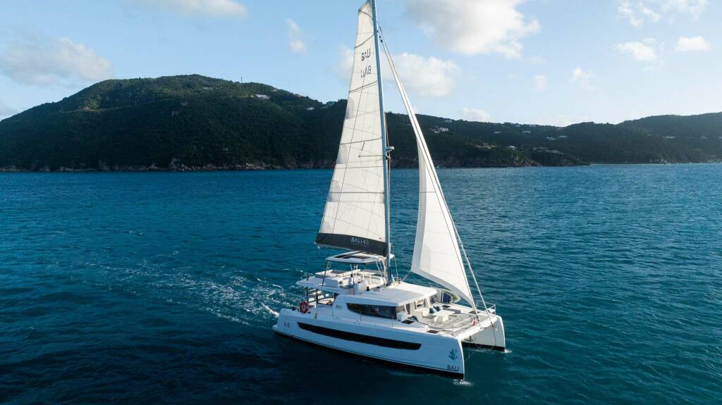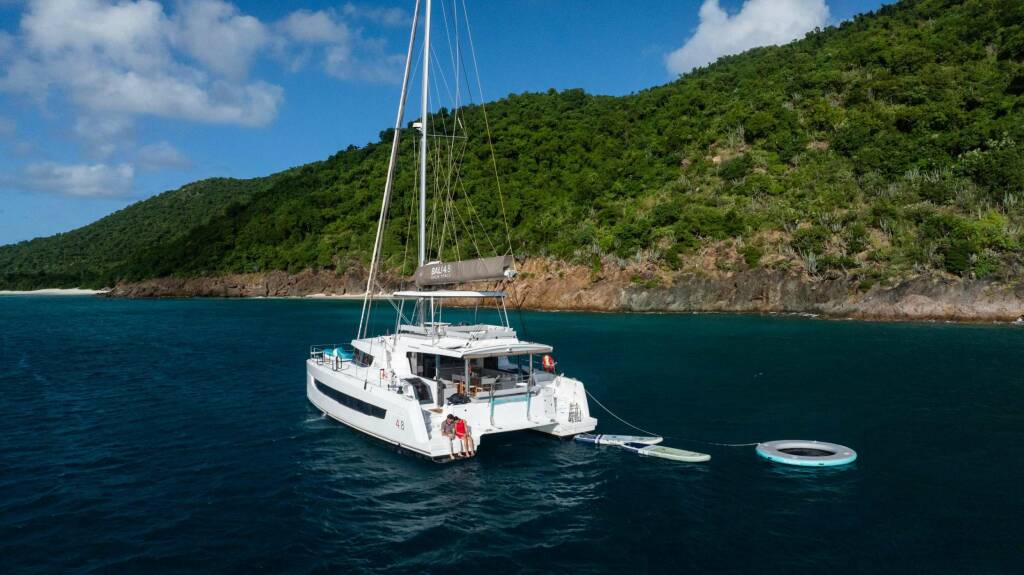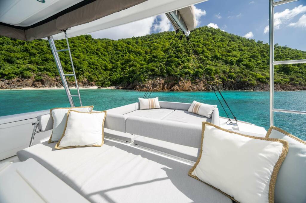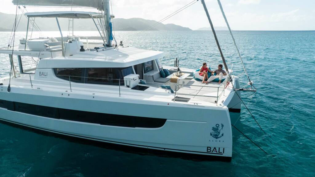 Catamarán de lujo ALORA, construido en 2024 está anclado en Caribbean Leewards, Caribbean Virgin Islands (BVI). Tiene 3 cabinas, puede acomodar 6 personas.