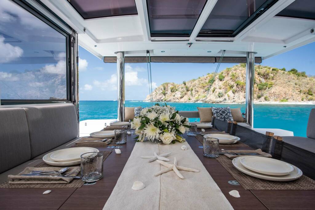 Catamarán de lujo SERENITY 4.8, construido en 2022 está anclado en Caribbean Virgin Islands (BVI). Tiene 4 cabinas, puede acomodar 8 personas.