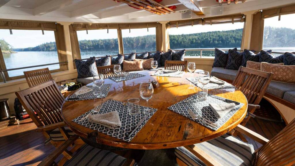 * June - August, cruising Desolation Sound, British Columbia, Canada. Almost all guests arrive and depart by private charter seaplane from Vancouver BC or Seattle.