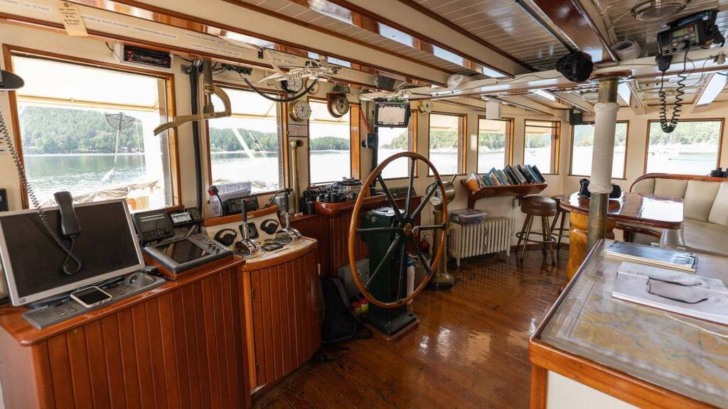 Catamarán de lujo PACIFIC YELLOWFIN, construido en 1943 está anclado en Pacific NW, Canada - West Coast. Tiene 4 cabinas, puede acomodar 9 personas.