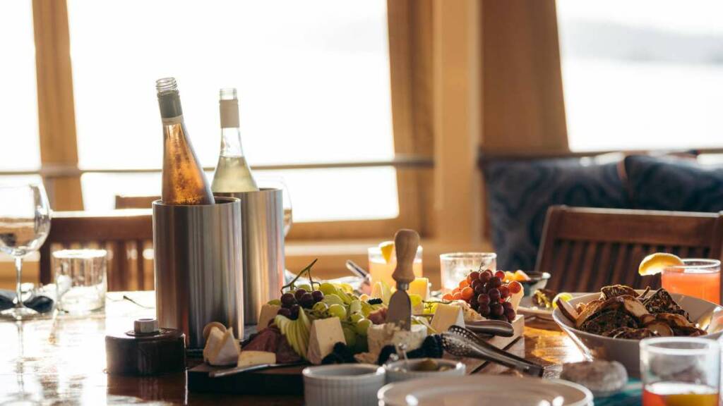 5% GST tax, customary crew gratuity at the Charterer’s discretion (15% advised and only paid at the charter’s conclusion), fishing licenses, and other alcoholic beverages.