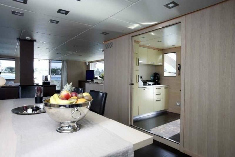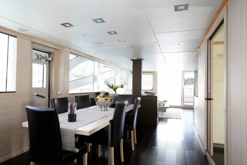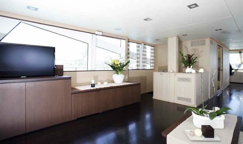 Accommodation: ARIA boasts spaces incomparable for a vessel of that size! 3 double bedded cabins and 2 twins. Each cabin has its own bathroom, desk, TV and safe.