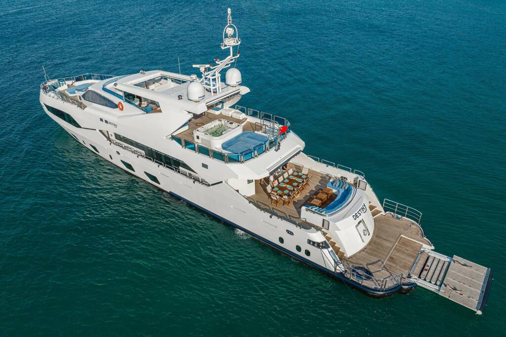Catamarán de lujo DESTINY, construido en 2018 está anclado en Turkey. Tiene 6 cabinas, puede acomodar 12 personas.