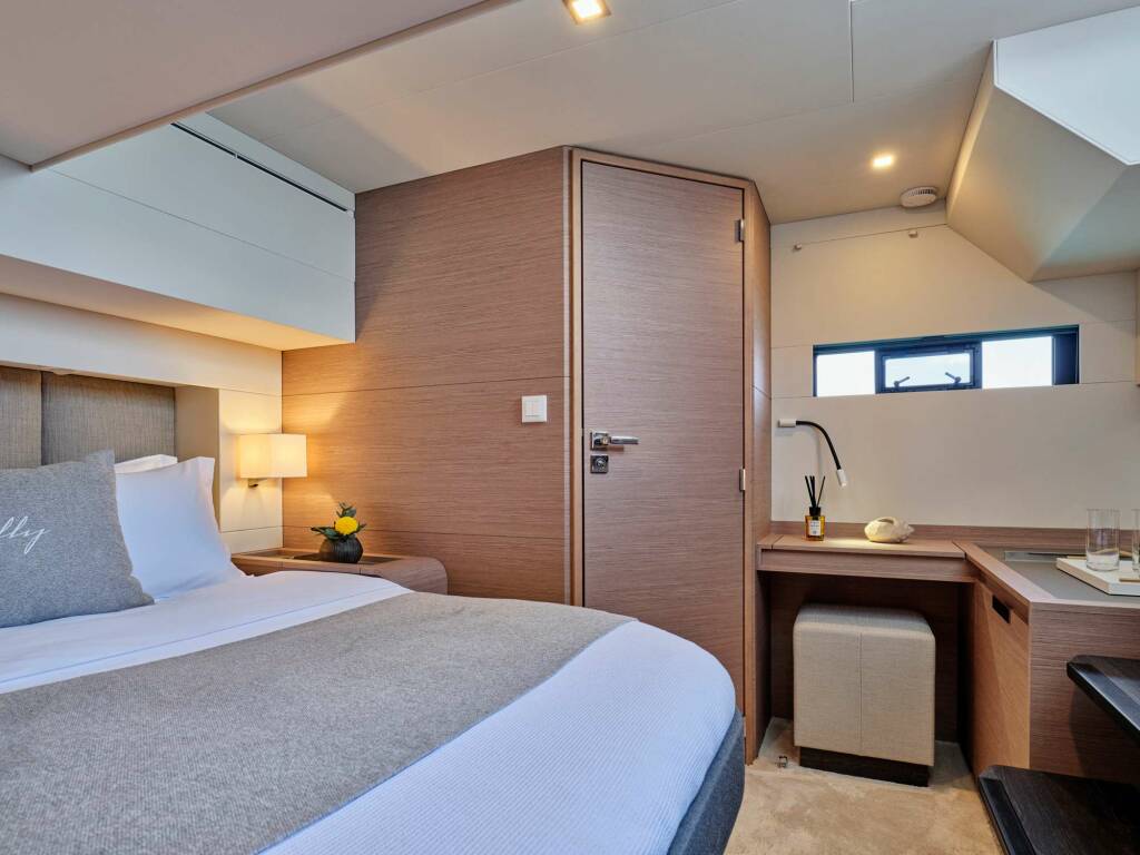 Catamarán de lujo ELLY, construido en 2023 está anclado en Greece. Tiene 4 cabinas, puede acomodar 8 personas.
