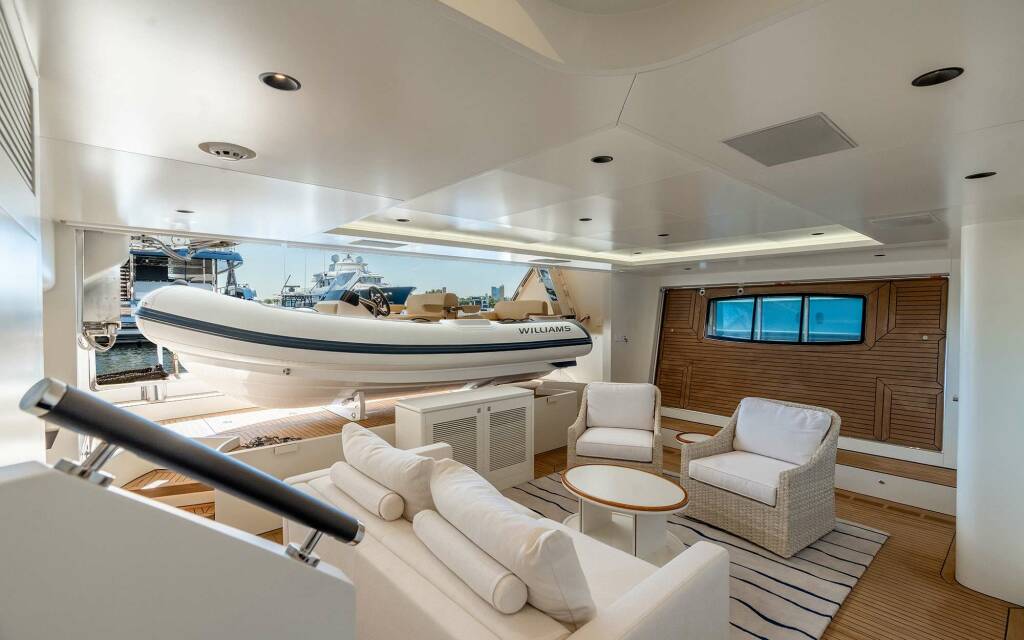 Below deck are 3 guest staterooms, comprised of a full beam large VIP suite which could serve as a 2nd Master and 2 Queen staterooms. All ensuite with showers and privatized toilets.