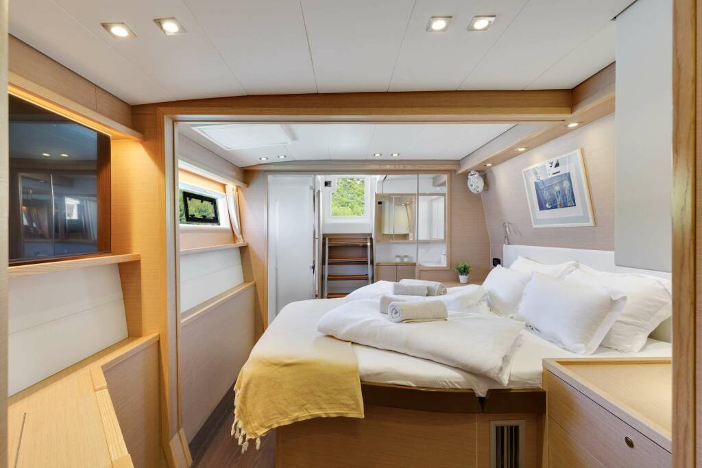 Catamarán de lujo Cool Change , construido en 2015 está anclado en Croatia. Tiene 4 cabinas, puede acomodar 8 personas.