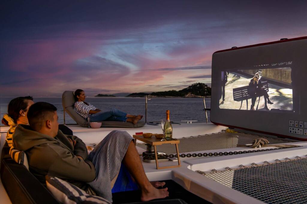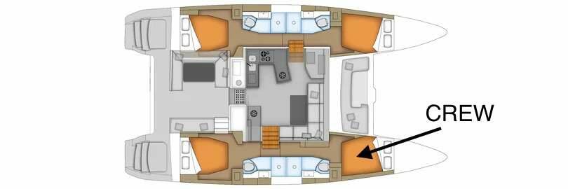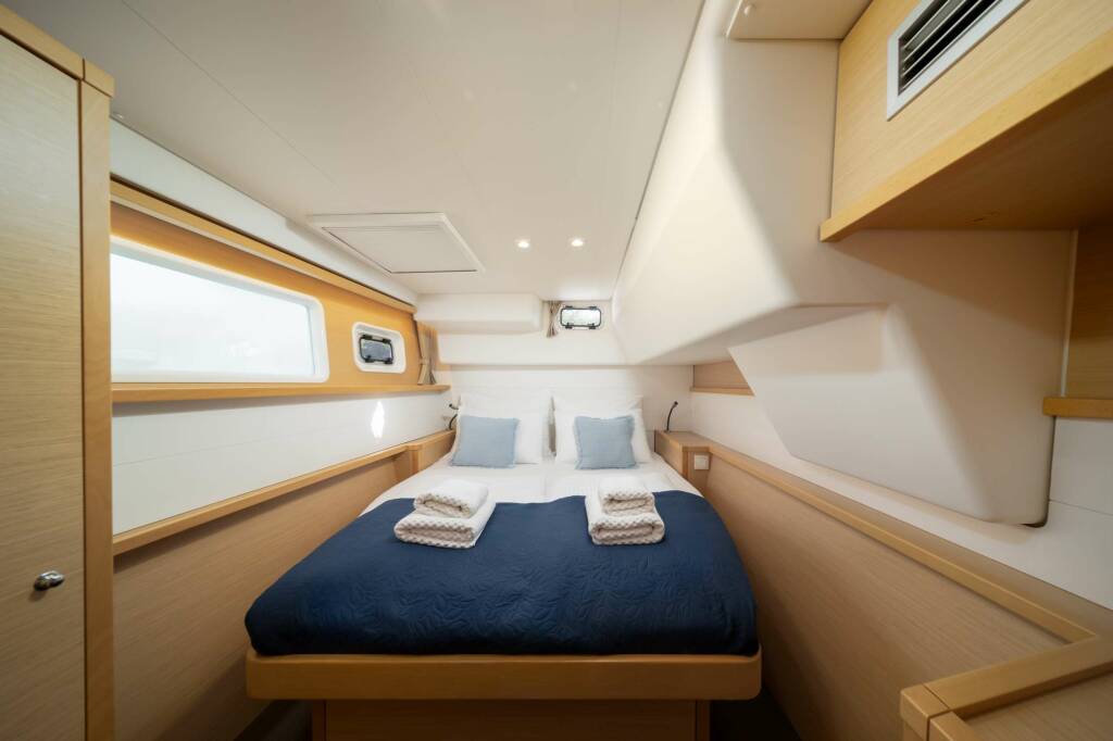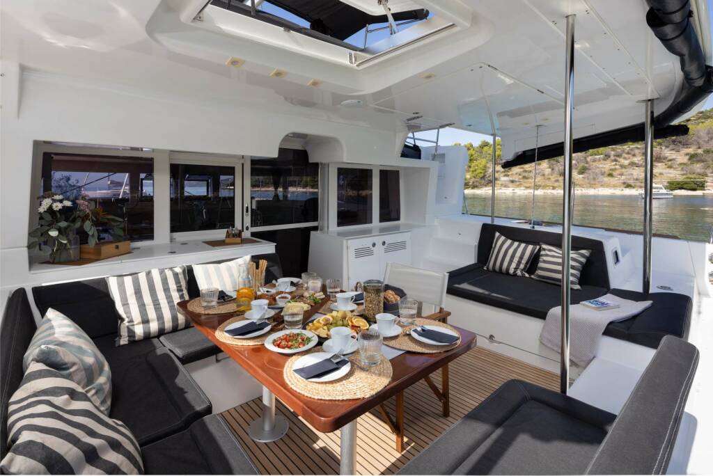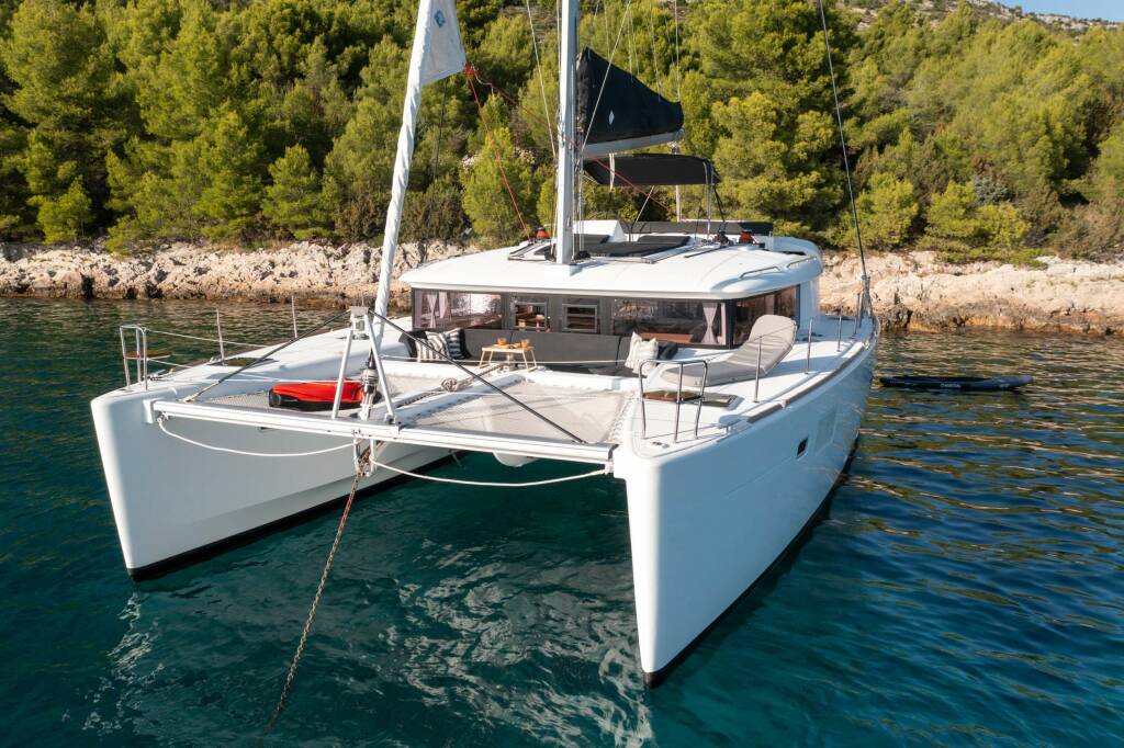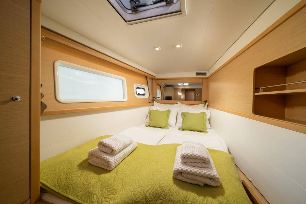 Catamarán de lujo Falco , construido en 2017 está anclado en Croatia. Tiene 3 cabinas, puede acomodar 6 personas.