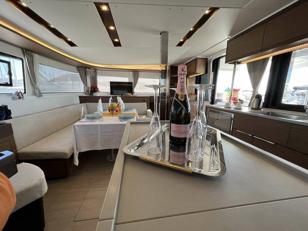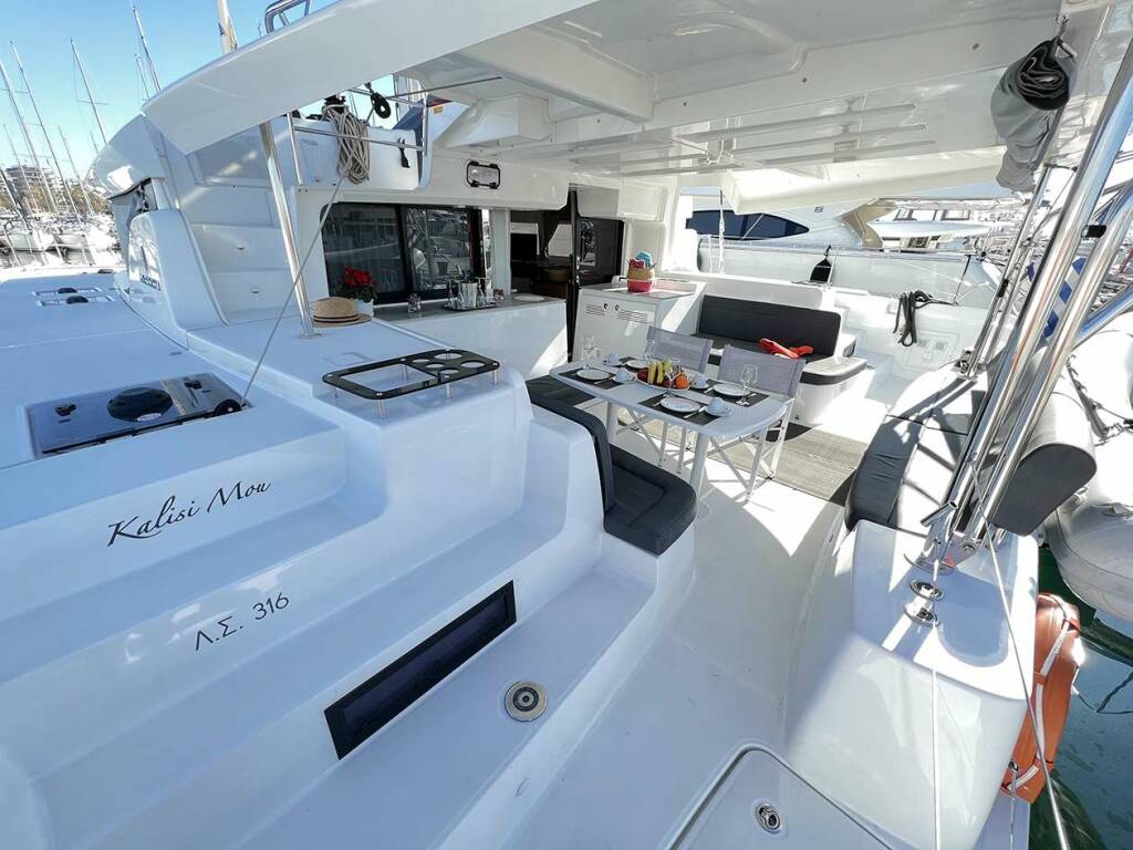 Catamarán de lujo KALISI MOU, construido en 2021 está anclado en Greece. Tiene 4 cabinas, puede acomodar 8 personas.