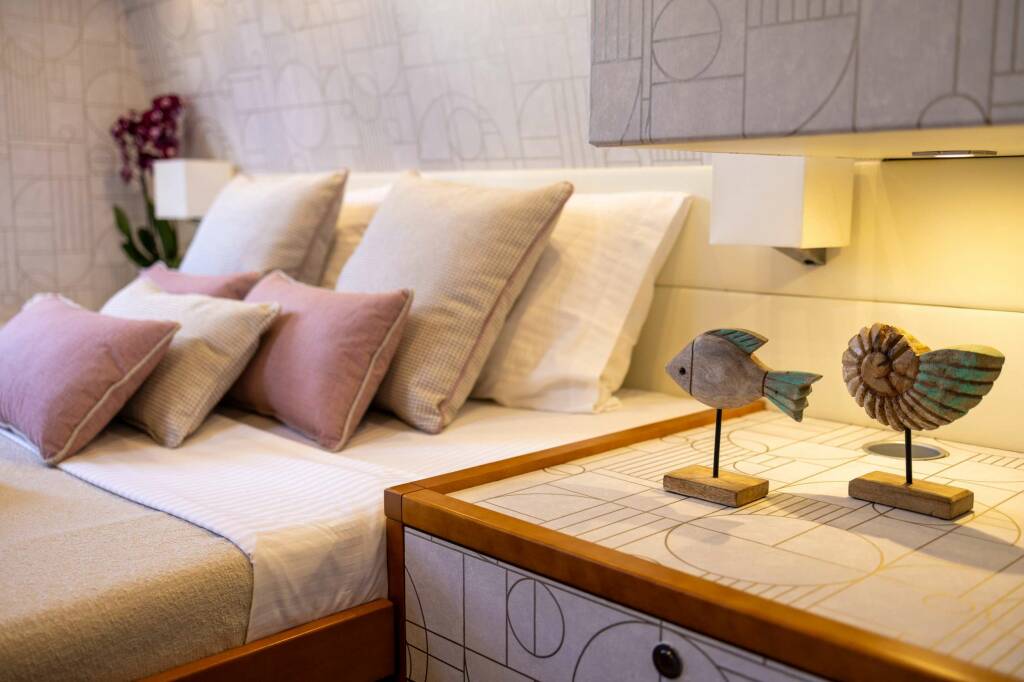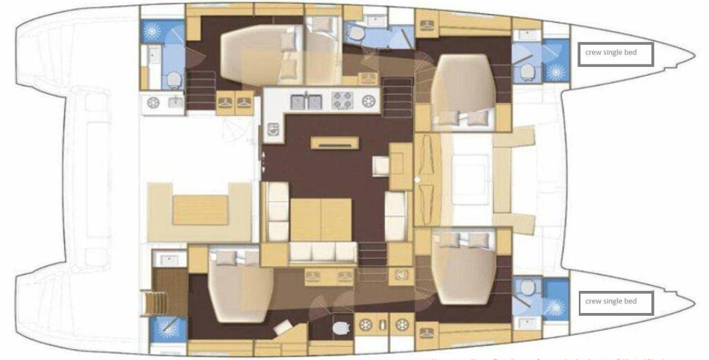 Accommodation: 4 Double Cabins with Queen size beds (1.60m x 2.05m)