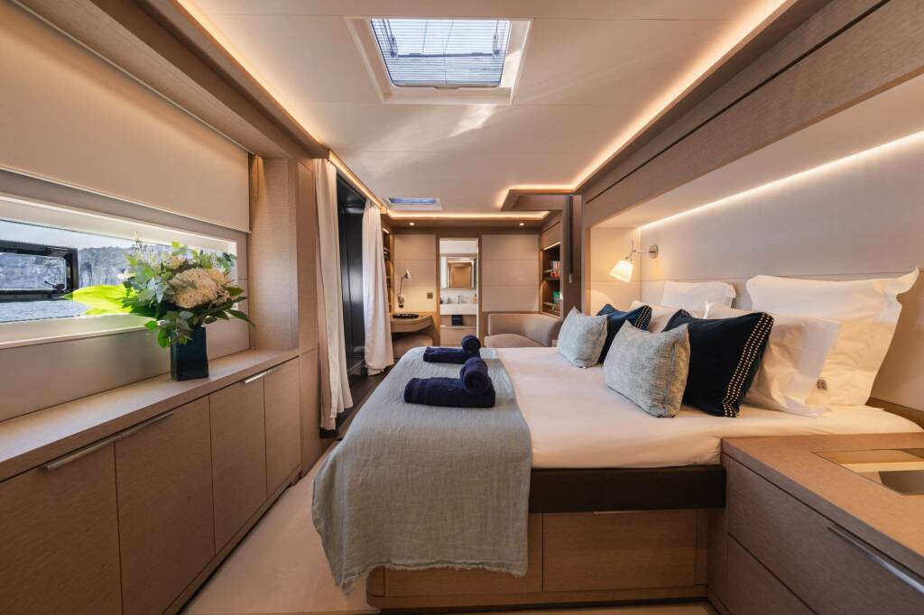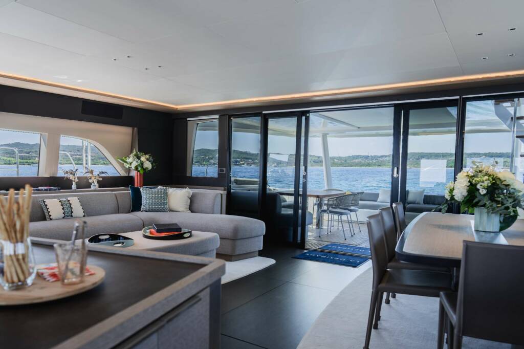 Catamarán de lujo La Désirade, construido en 2025 está anclado en W. Med -Riviera/Cors/Sard.. Tiene 4 cabinas, puede acomodar 9 personas.