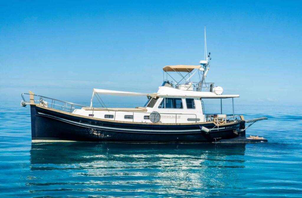 Boat equipment features a radar, a generator, a salon GPS plotter, a bimini and a bow thruster. It also boasts a flat screen TV, heating, air conditioning, an audio system and outside speakers. The fully-equipped galley includes a microwave, a coffee machine, a fridge, a cooker and a sink.