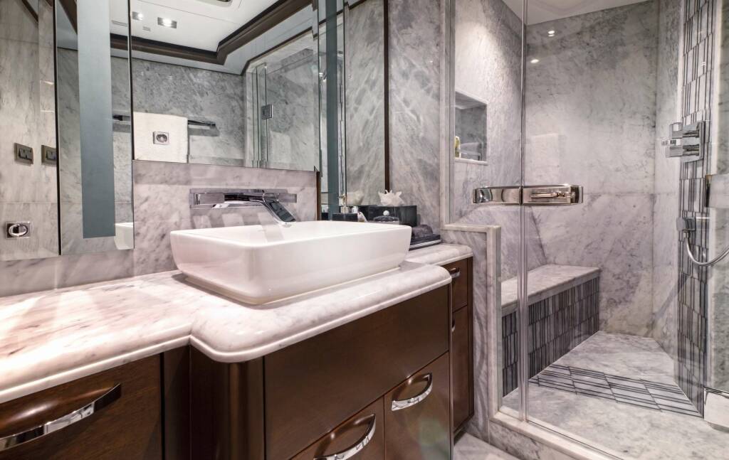 • Guest Stateroom, port side - Two twins that can be converted into a king bed with ensuite.