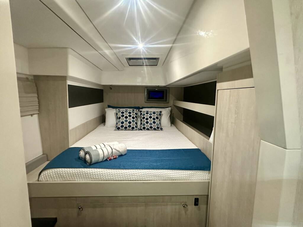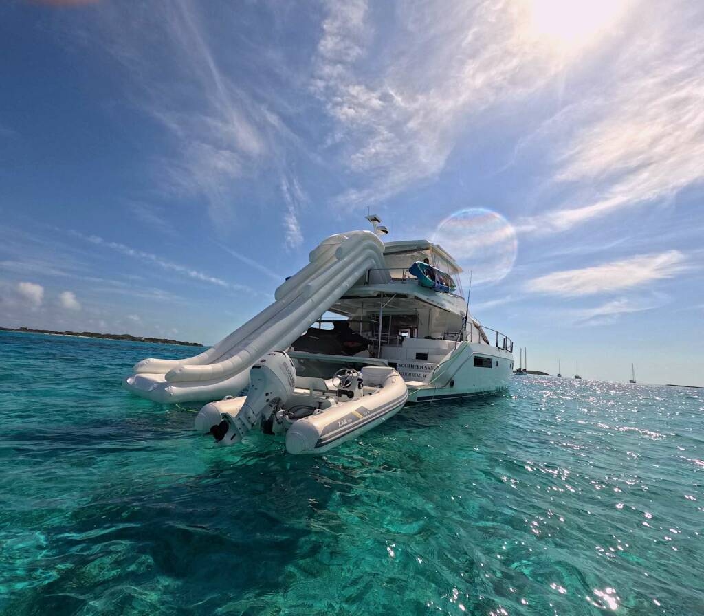 Catamarán de lujo SOUTHERN SKY, construido en 2018 está anclado en Bahamas. Tiene 3 cabinas, puede acomodar 6 personas.