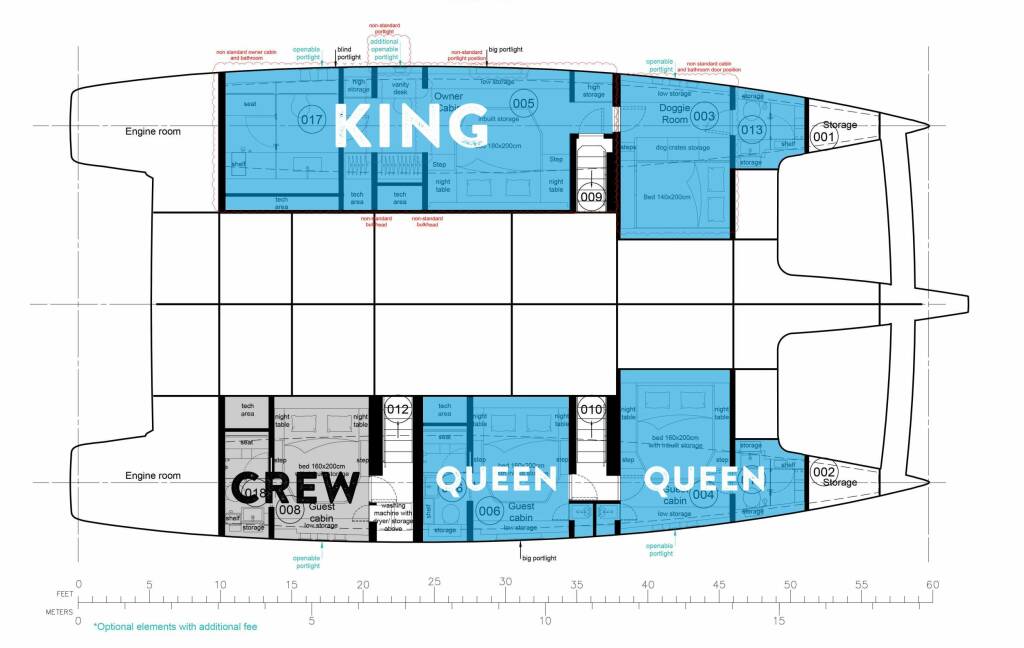 Catamarán de lujo EVERLONG, construido en 2025 está anclado en Caribbean Virgin Islands (US/BVI), Caribbean Virgin Islands (US). Tiene 4 cabinas, puede acomodar 6 personas.