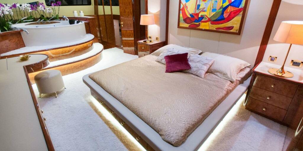 Accommodation: Ensuite master’s cabin equipped with a jacuzzi, a queen cabin, and one guest twin cabin convertible to a double cabin with an additional pullman bed.