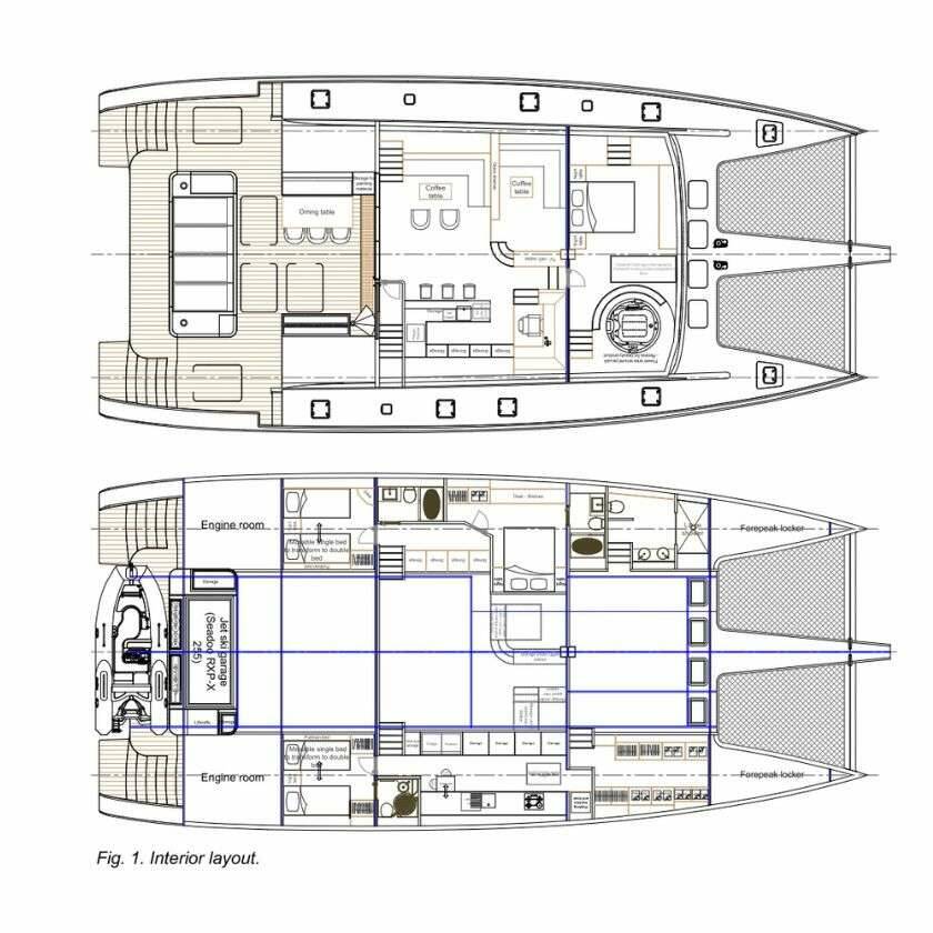 • Catamarán para amplios espacios, mayor estabilidad y más privacidad.