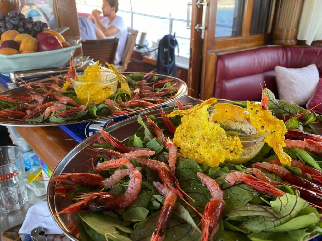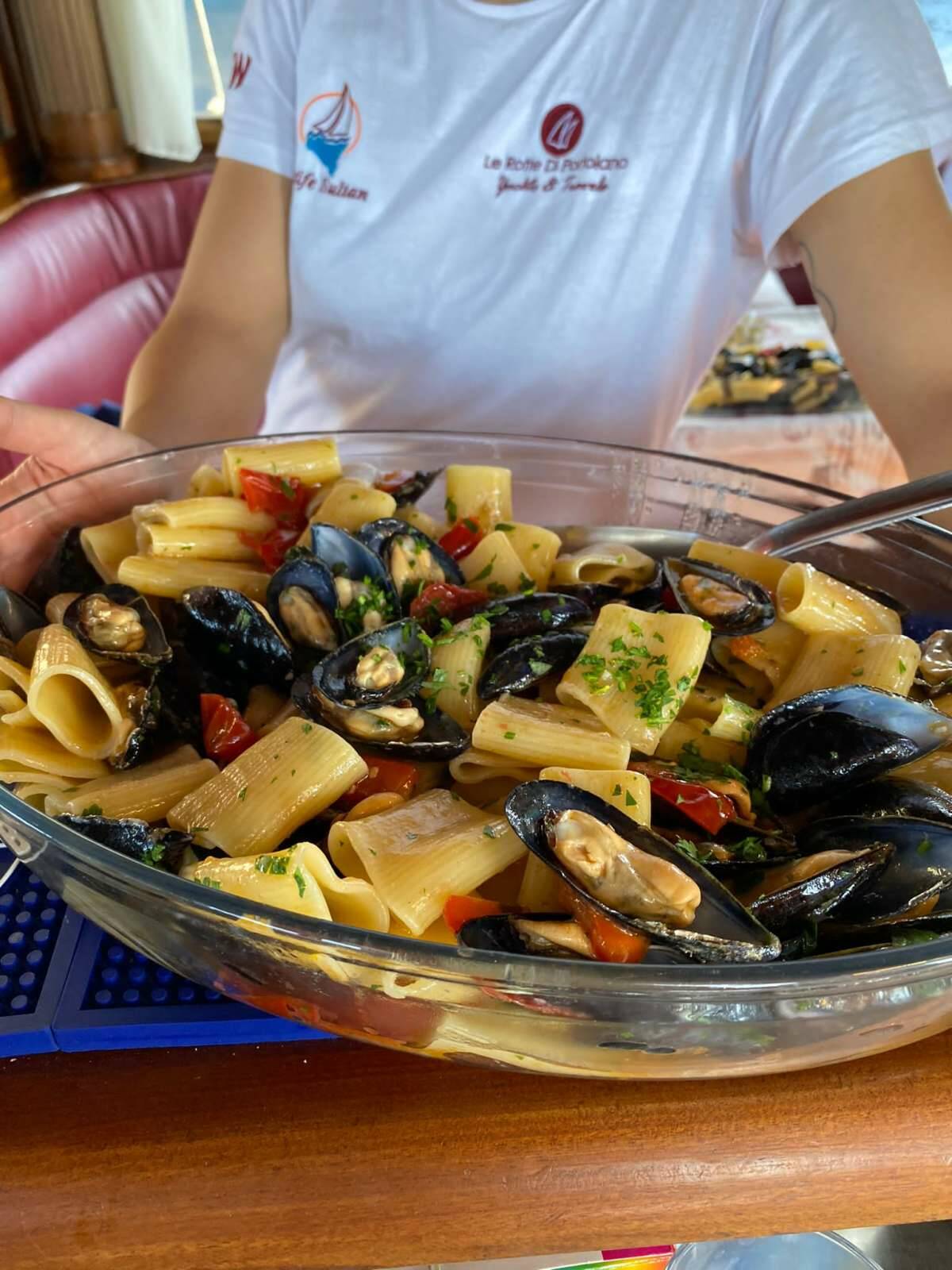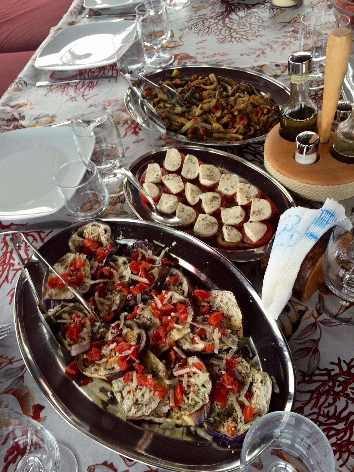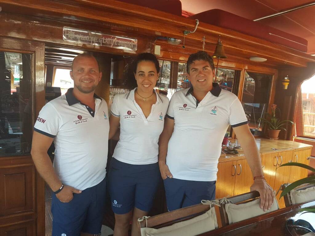3 Italian crew (skipper, cook, sailor/maid).