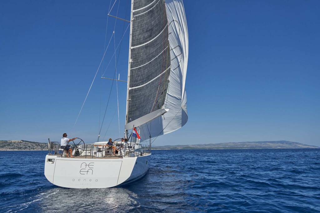 Yate de lujo de vela AENEA (CNB 76), construido en 2017 está anclado en Croatia. Tiene 3 cabinas, puede acomodar 8 personas.