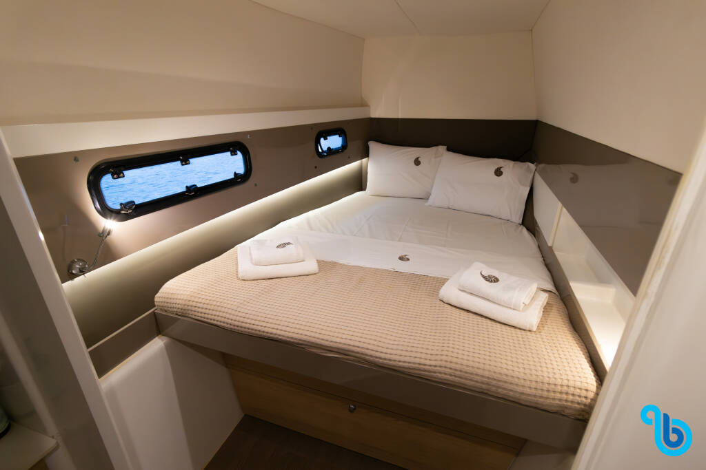 Il comandante (skipper) non è incluso nel prezzo della barca. Sarà possibile aggiungere lo skipper durante la procedura di conferma: solitamente il costo è compreso tra 180 e 250€ al giorno più vitto: Lo skipper necessita di una cabina dedicata ma previa verifica, con un operatore BeBlue, sarà possibile richiedere che dorma in dinette (salottino centrale).