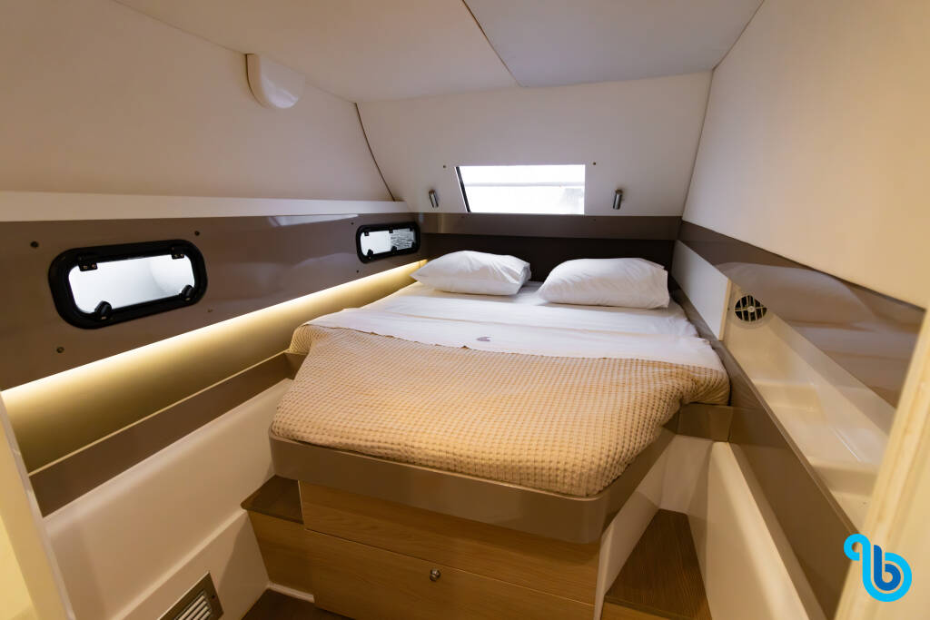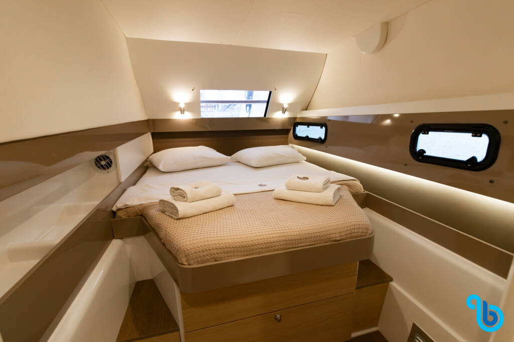 Il comandante (skipper) non è incluso nel prezzo della barca. Sarà possibile aggiungere lo skipper durante la procedura di conferma: solitamente il costo è compreso tra 180 e 250€ al giorno più vitto: Lo skipper necessita di una cabina dedicata ma previa verifica, con un operatore BeBlue, sarà possibile richiedere che dorma in dinette (salottino centrale).