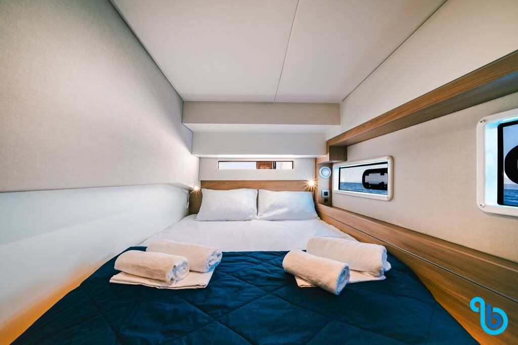 Il comandante (skipper) non è incluso nel prezzo della barca. Sarà possibile aggiungere lo skipper durante la procedura di conferma: solitamente il costo è compreso tra 180 e 250€ al giorno più vitto: Lo skipper necessita di una cabina dedicata ma previa verifica, con un operatore BeBlue, sarà possibile richiedere che dorma in dinette (salottino centrale).
