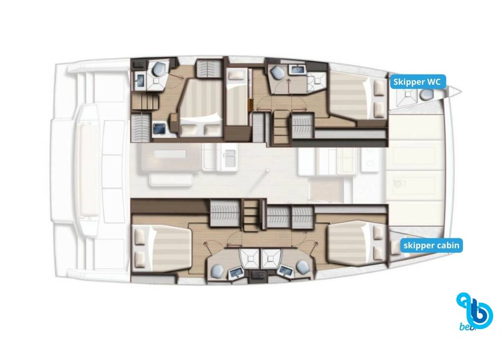 Il comandante (skipper) non è incluso nel prezzo della barca. Sarà possibile aggiungere lo skipper durante la procedura di conferma: solitamente il costo è compreso tra 180 e 250€ al giorno più vitto: Lo skipper necessita di una cabina dedicata ma previa verifica, con un operatore BeBlue, sarà possibile richiedere che dorma in dinette (salottino centrale).