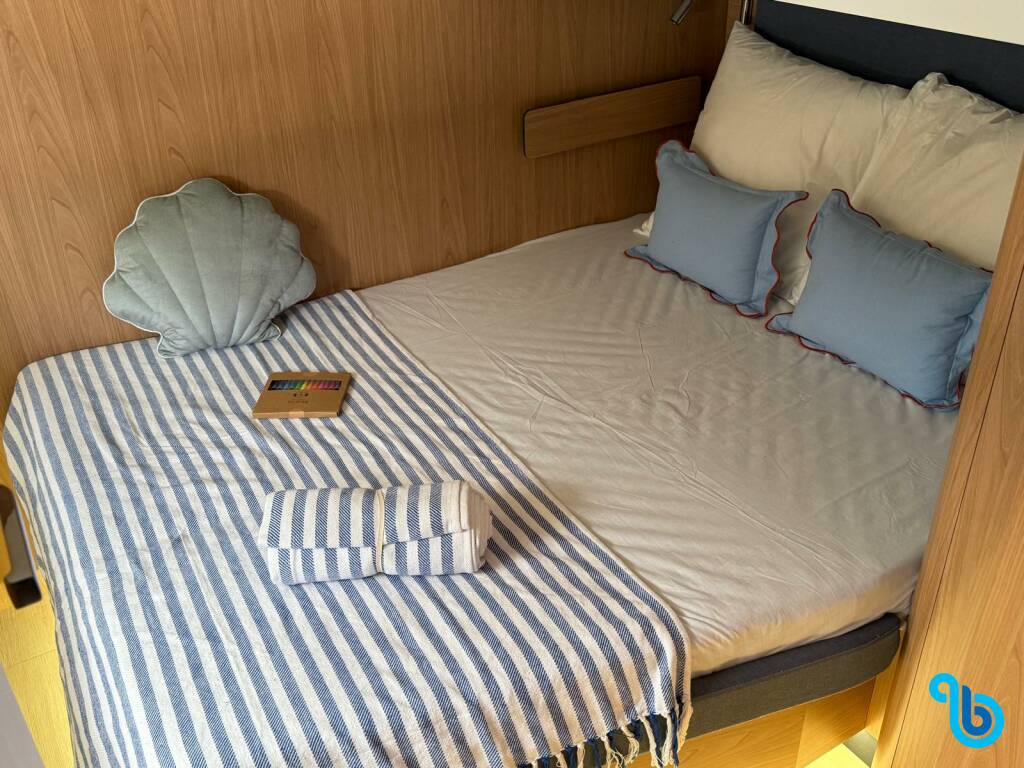 Il comandante (skipper) non è incluso nel prezzo della barca. Sarà possibile aggiungere lo skipper durante la procedura di conferma: solitamente il costo è compreso tra 180 e 250€ al giorno più vitto: Lo skipper necessita di una cabina dedicata ma previa verifica, con un operatore BeBlue, sarà possibile richiedere che dorma in dinette (salottino centrale).