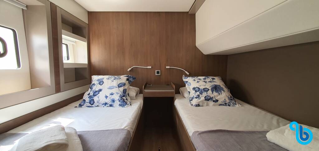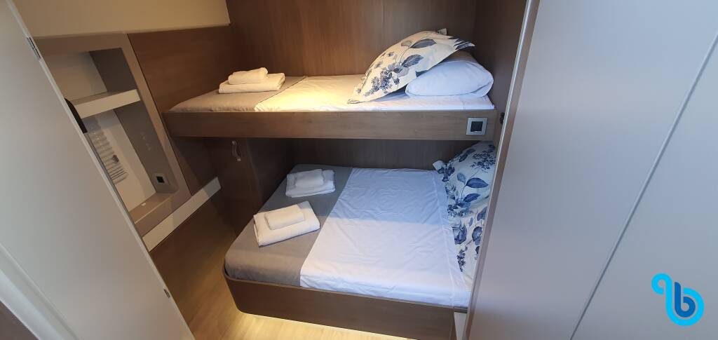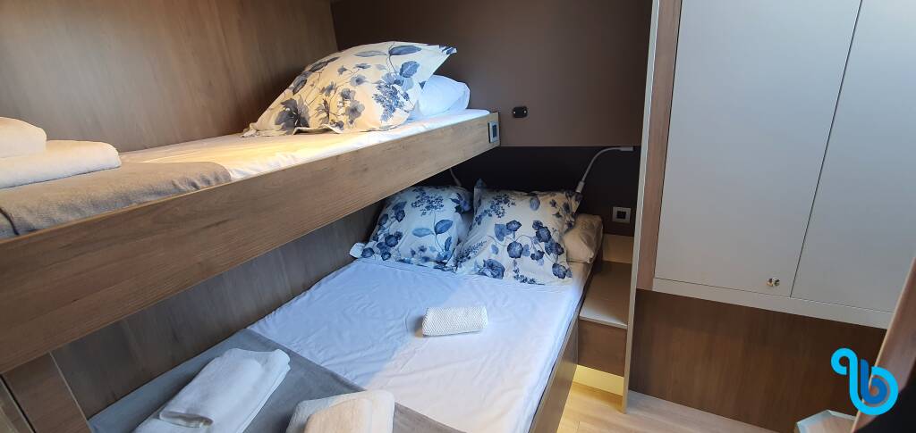 Cabine 5 GUESTS: 5 double cabins (1 twin beds, 1 bunk) CREW: cabin + WC in forepeak, 1 double aft stern cabin + WC