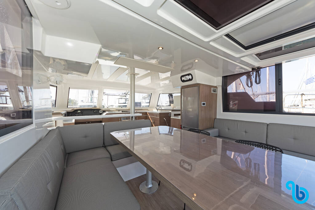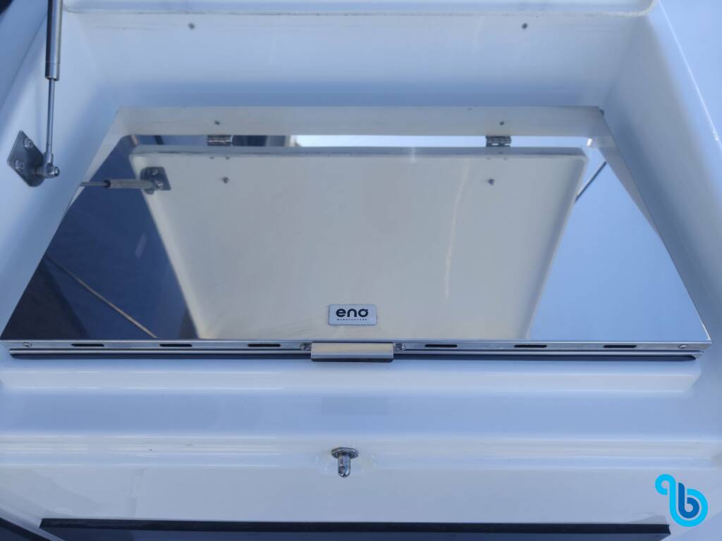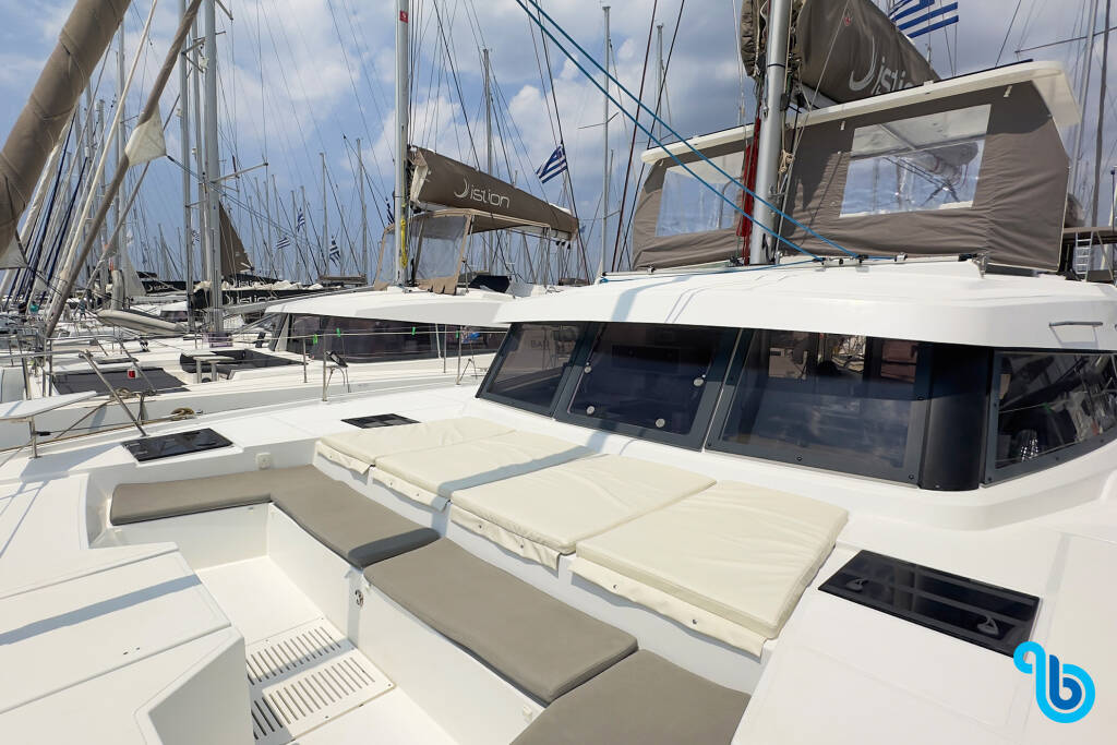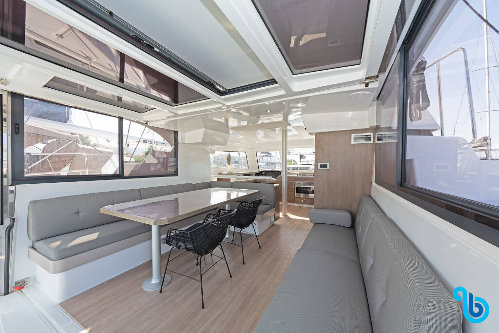 "Barca comoda e funzionale, qualche soluzione originale come le panche pozzetto trasformabili in letto/prendisole. Molto luminosi gli interni. Spazio stivaggio cambusa un po' ridotto o dimensionato per uso armatoriale."