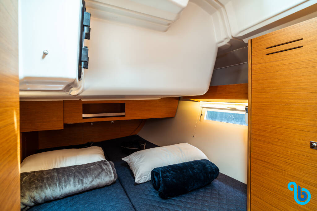 Il comandante (skipper) non è incluso nel prezzo della barca. Sarà possibile aggiungere lo skipper durante la procedura di conferma: solitamente il costo è compreso tra 180 e 250€ al giorno più vitto: Lo skipper necessita di una cabina dedicata ma previa verifica, con un operatore BeBlue, sarà possibile richiedere che dorma in dinette (salottino centrale).