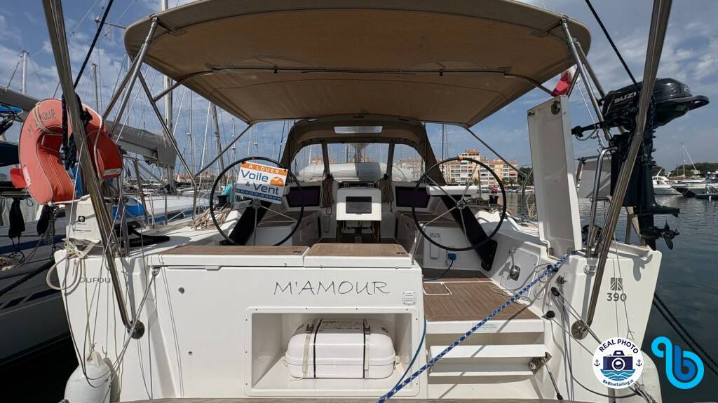 Il Dufour 390 M'Amour (Barca a vela), è stato varato nel 2023 ed è basato in Francia - Costa Azzurra della città di Hyeres. Lo scafo è allestito con 3 cabine e 1 wc ed è omologato per ospitare comodamente 6 + 2 persone.