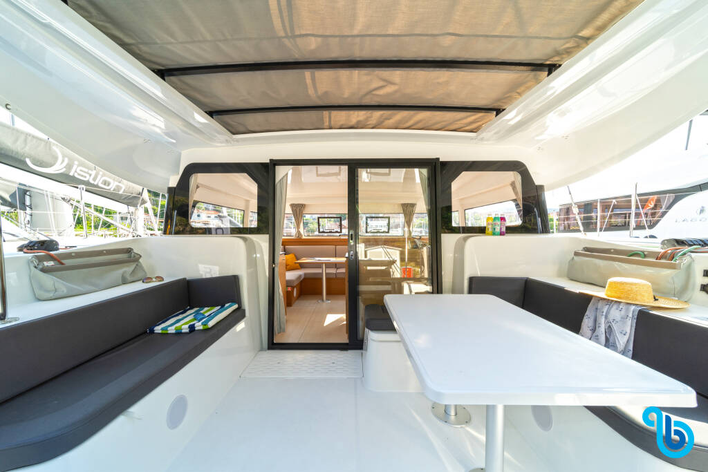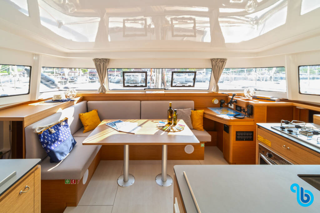 "Barca comoda e funzionale, qualche soluzione originale come le panche pozzetto trasformabili in letto/prendisole. Molto luminosi gli interni. Spazio stivaggio cambusa un po' ridotto o dimensionato per uso armatoriale."